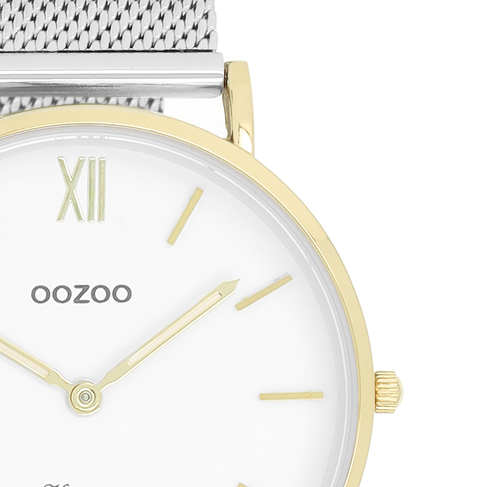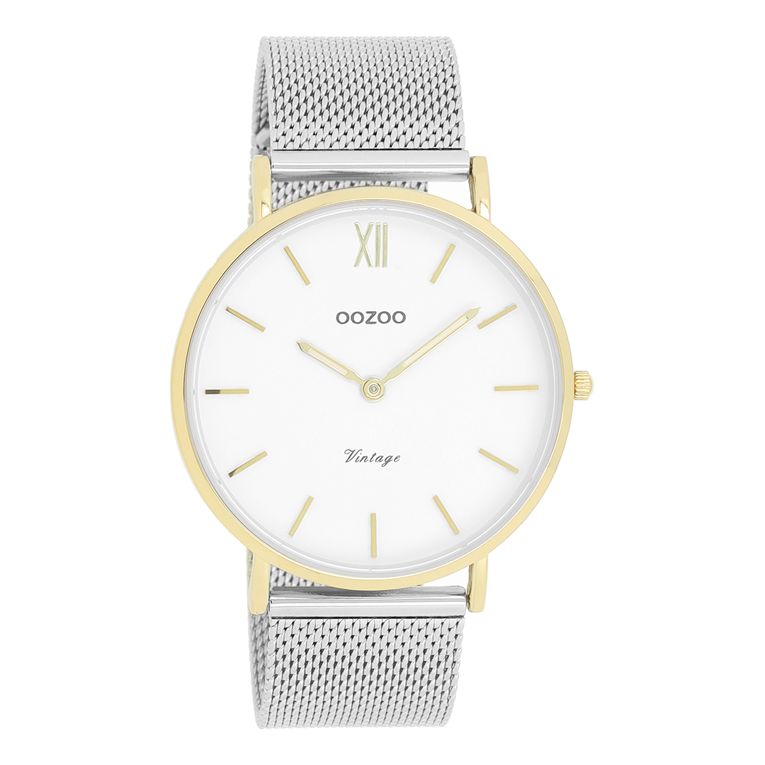 OOZOO Montre en couleur or avec bracelet en mesh en couleur argent - C20116