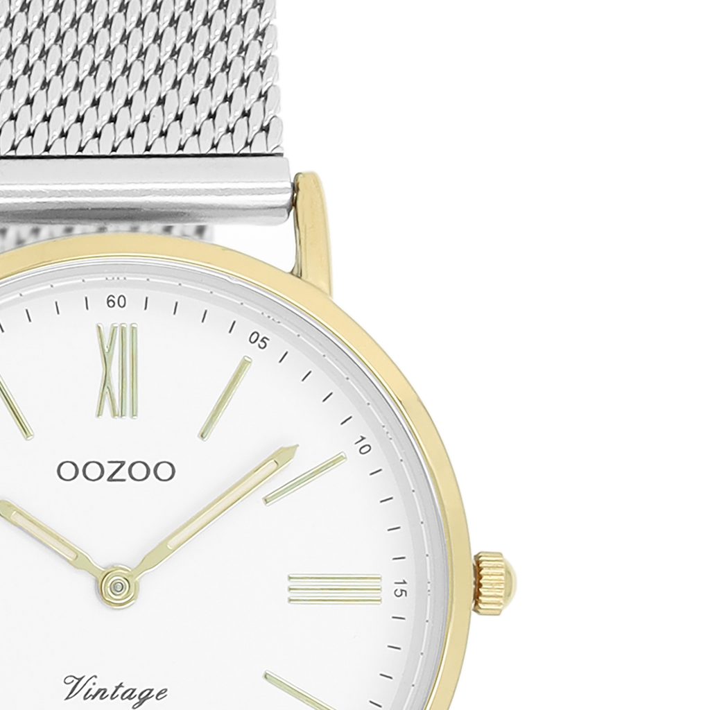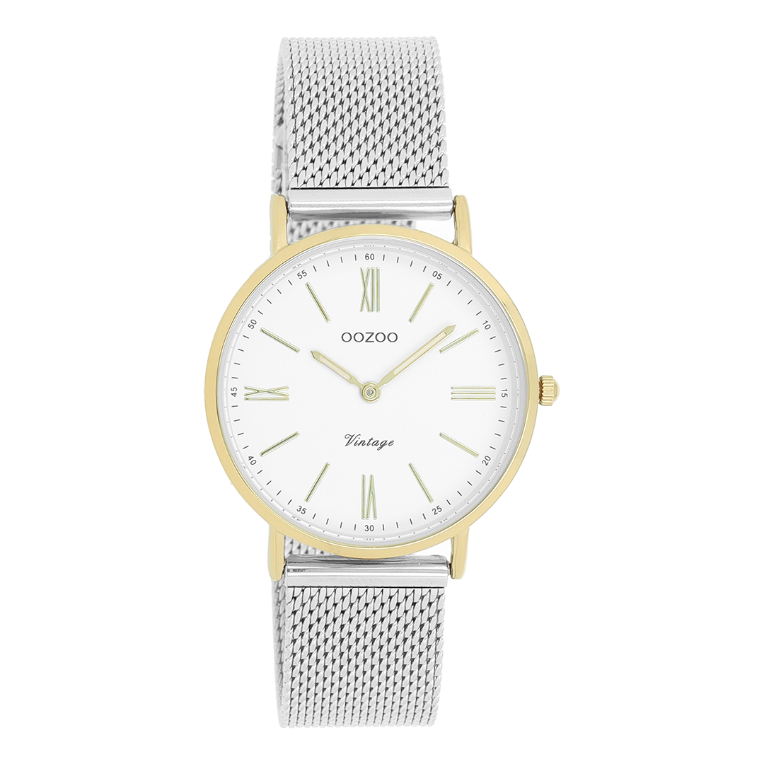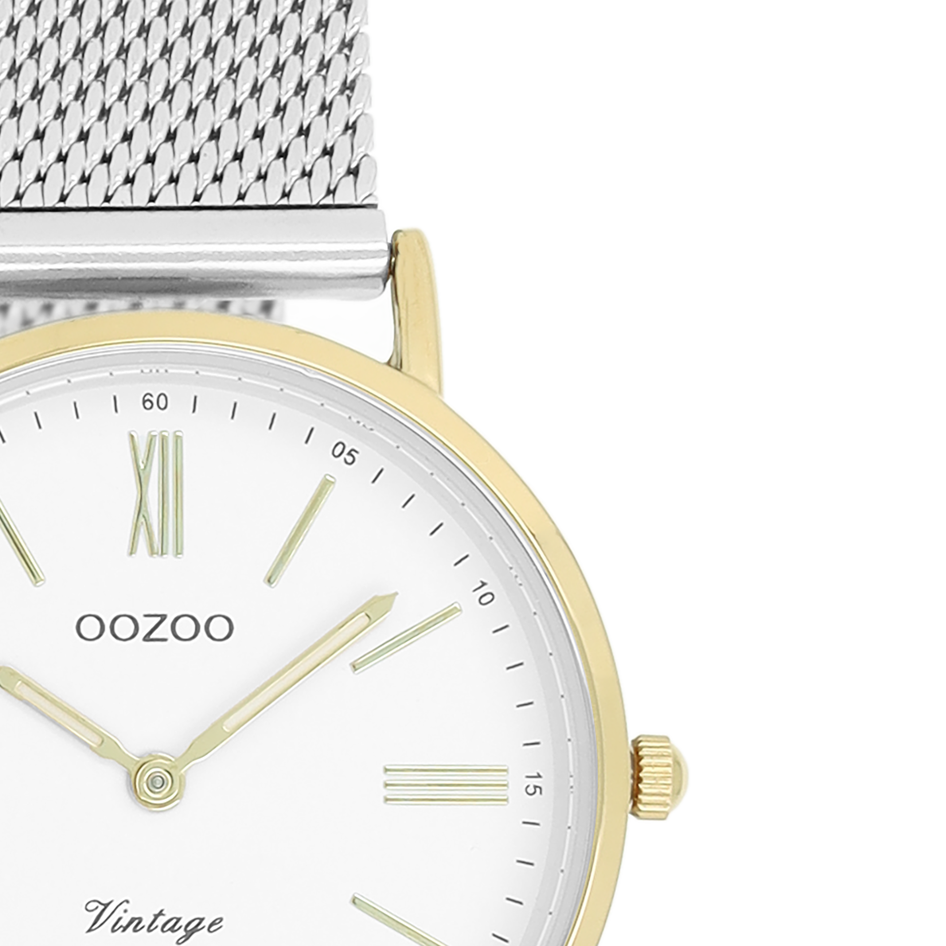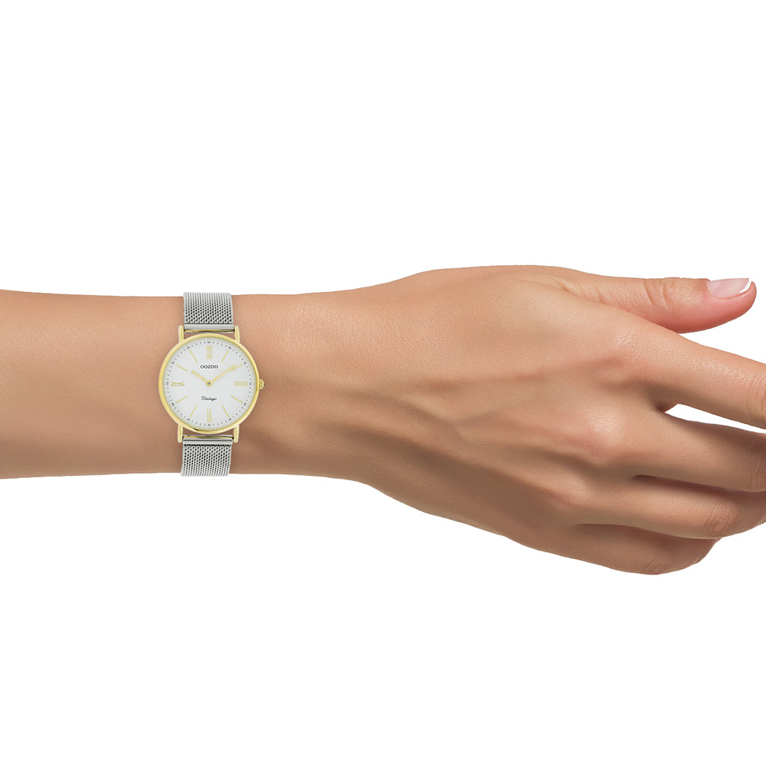 OOZOO Montre en couleur or avec bracelet en mesh en couleur argent - C20123