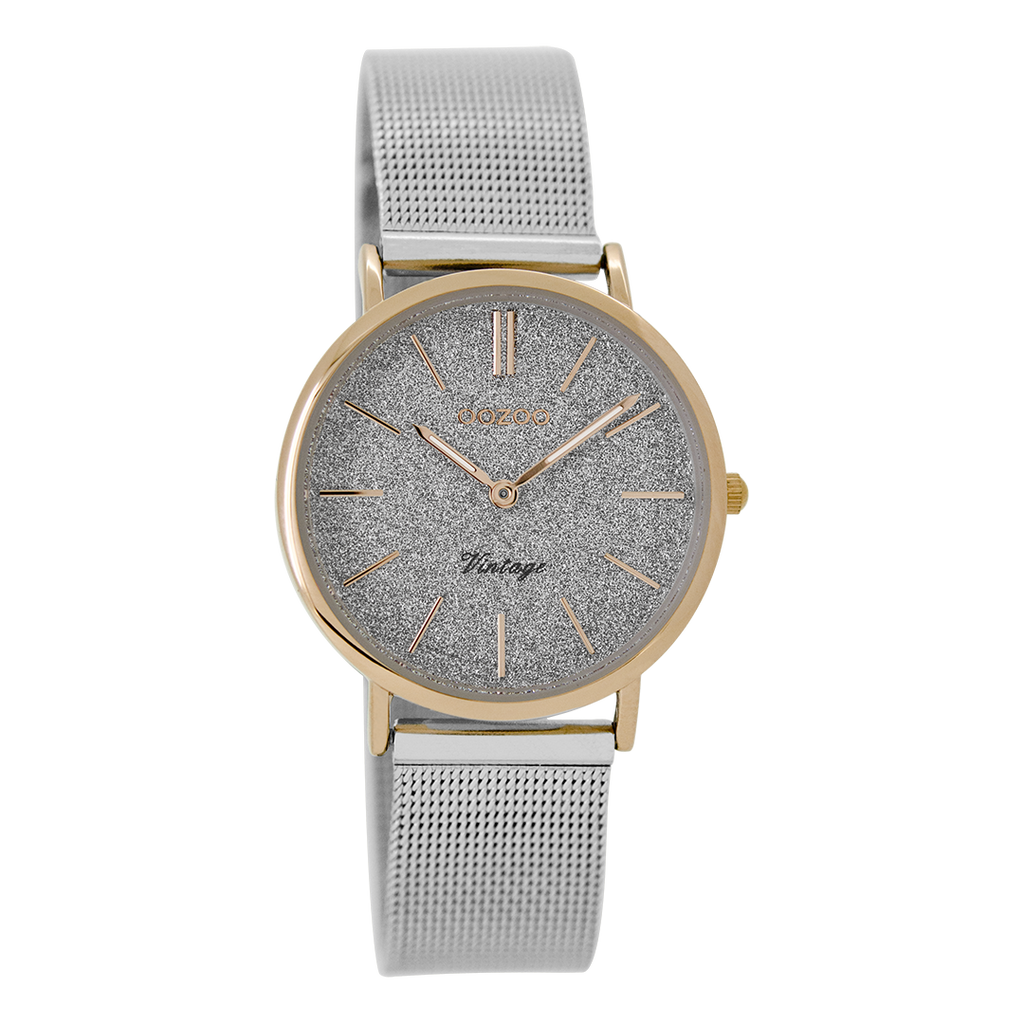 OOZOO Montre en couleur or rose avec bracelet en mesh en couleur argent - C8838