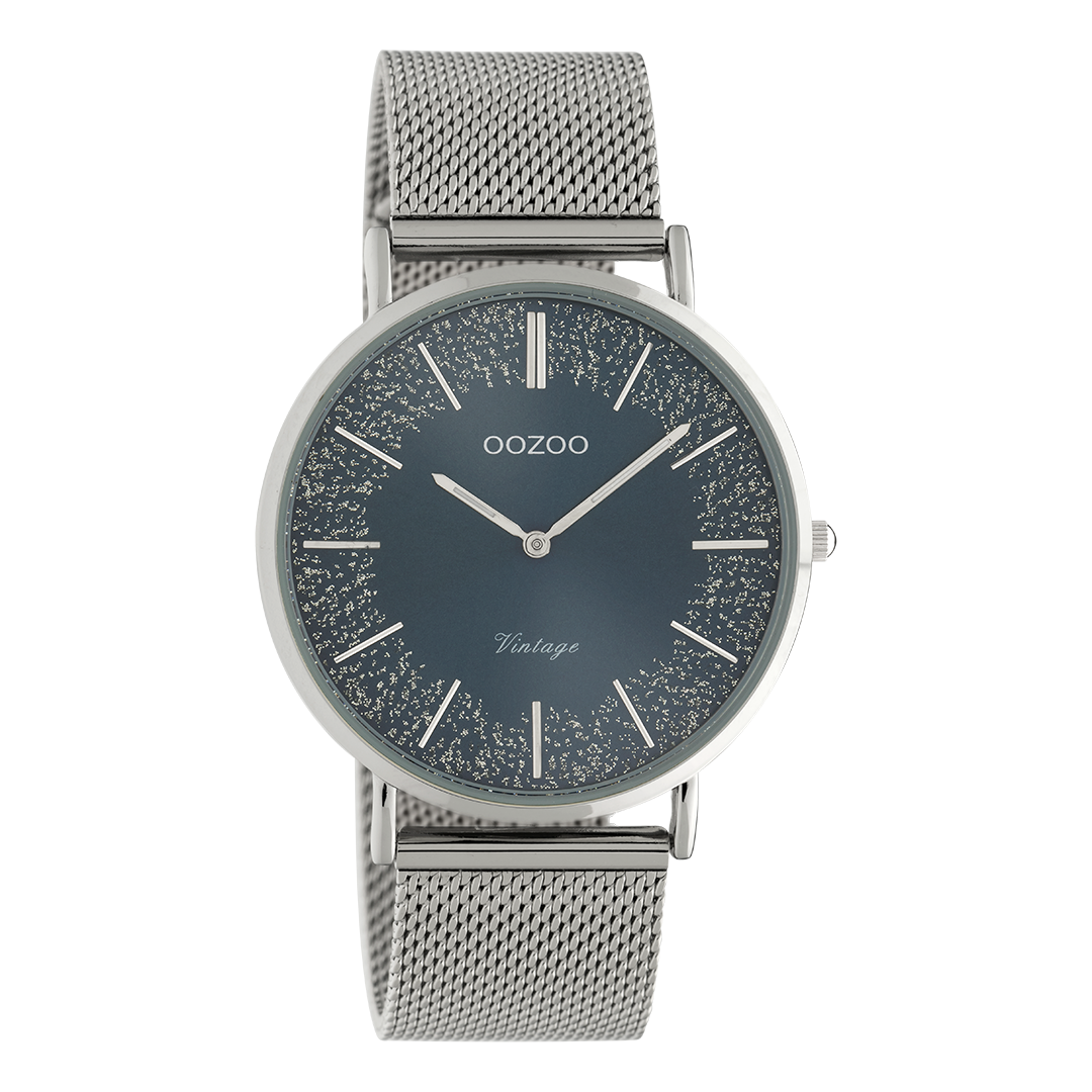 The classic look stays key in this trendy series and therefore, this round OOZOO vintage design with a playful wink is the season must-have! This ladies watch is the perfect combination of fashion and comfort with its 40 mm silver coloured metal watch case and blue sparkling dial. The silver coloured metal mesh bracelet makes this watch a trendy accessory, which you can wear every day. The dial has silver coloured stripes digits and matching hands. The C20134 adds the sparkle to your outfit. The mineral glass lays in a 6,9 mm slim metal watch case with IP-plating. This design has a stainless steel backplate and is nickel safe. This watch has a 2 Japanese movement and is covered by a 2 year warranty (see section 3 of our Refund, shipping & warranty policy).