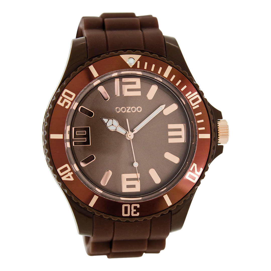 OOZOO Montre en marron foncé avec bracelet en caoutchouc en marron foncé - C5039