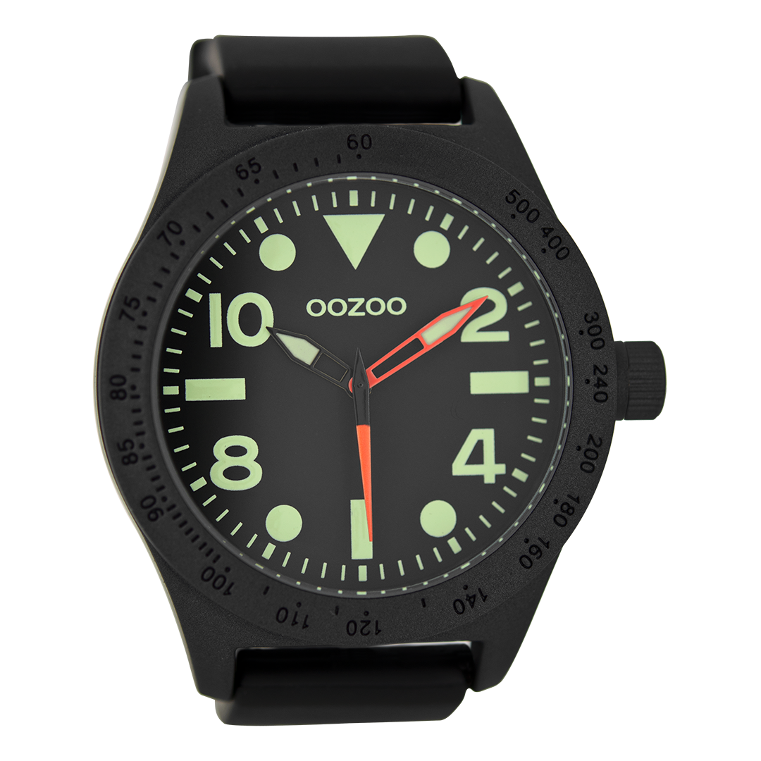OOZOO Montre en noir avec bracelet en caoutchouc en noir - C6754