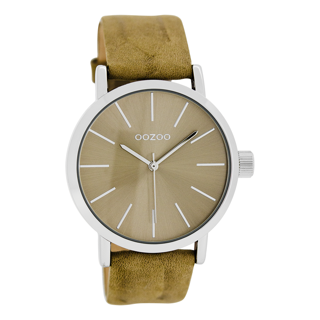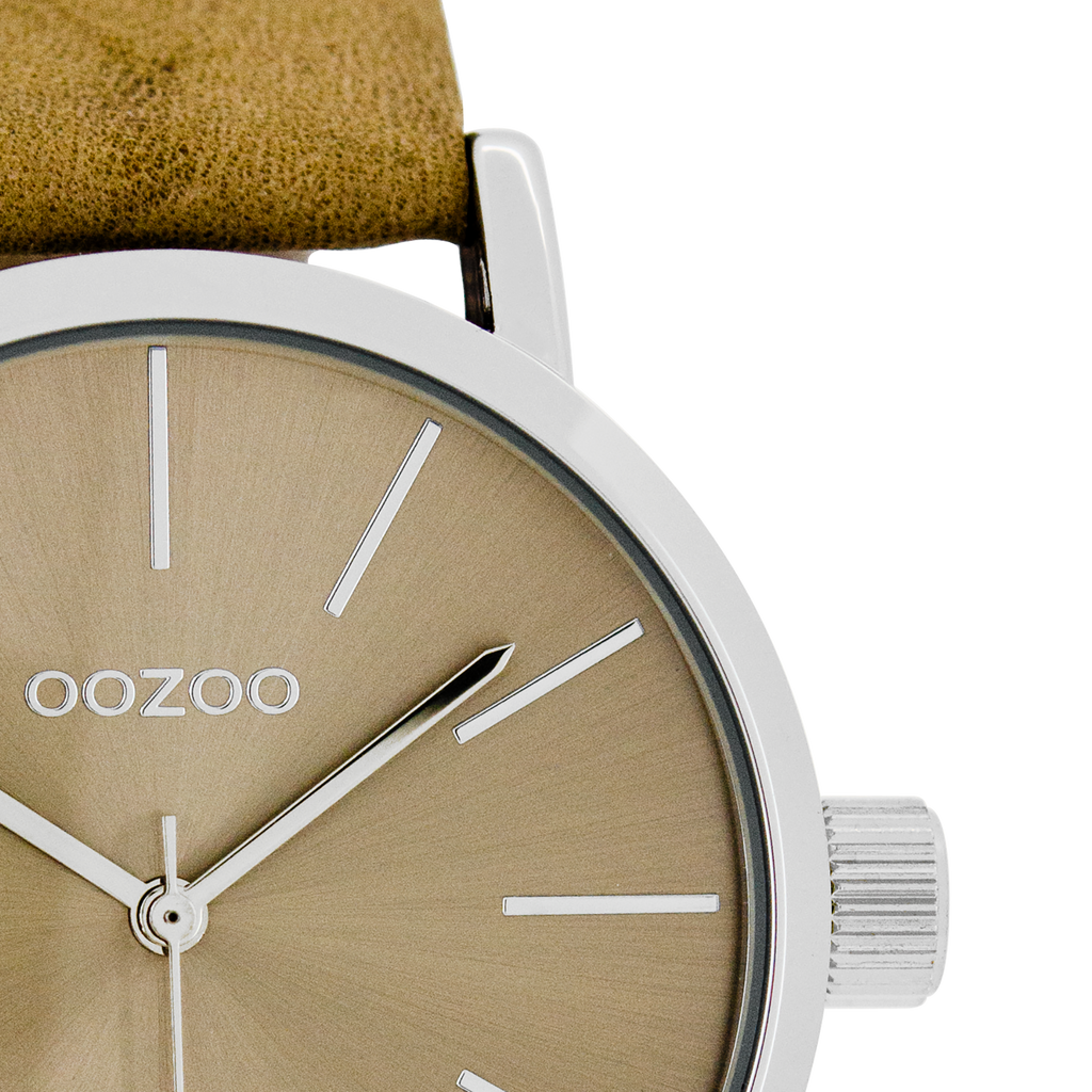 OOZOO Montre en couleur argent avec bracelet en cuir en sable - C8420