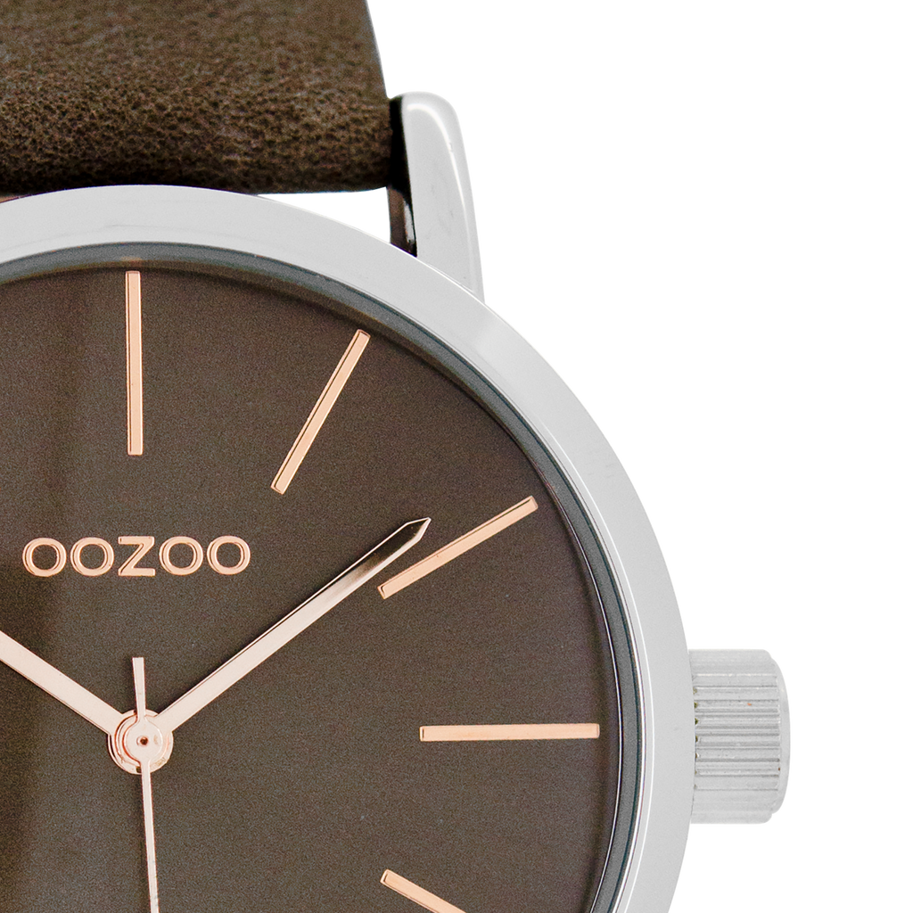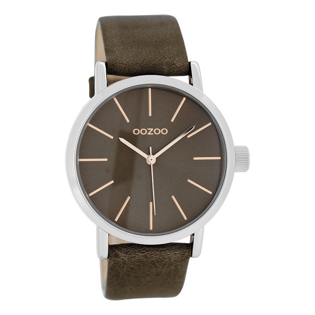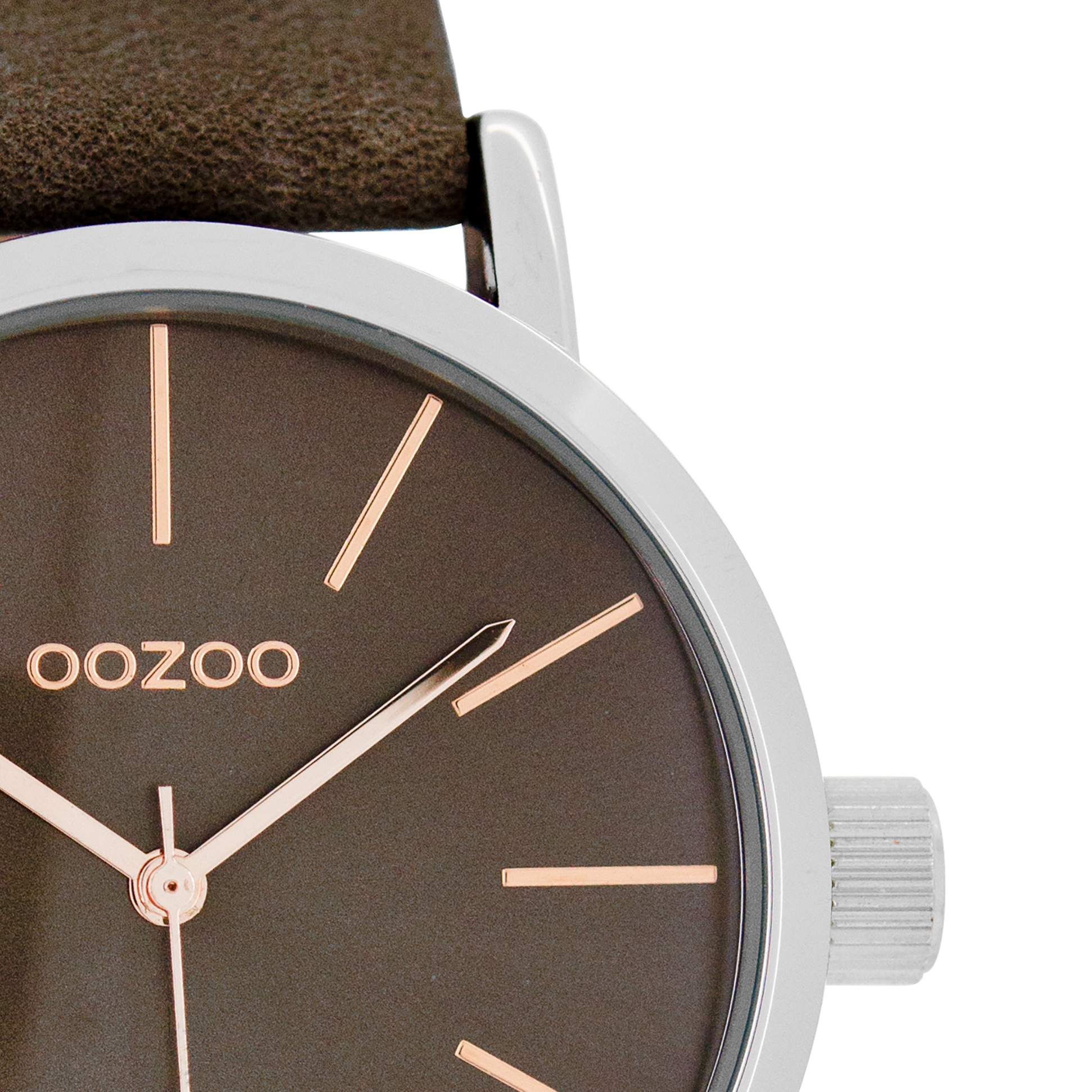 OOZOO Montre en couleur argent avec bracelet en cuir en marron foncé - C8423