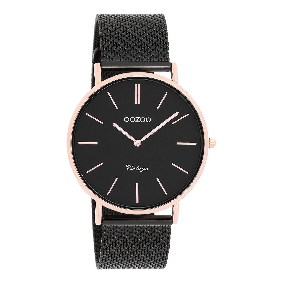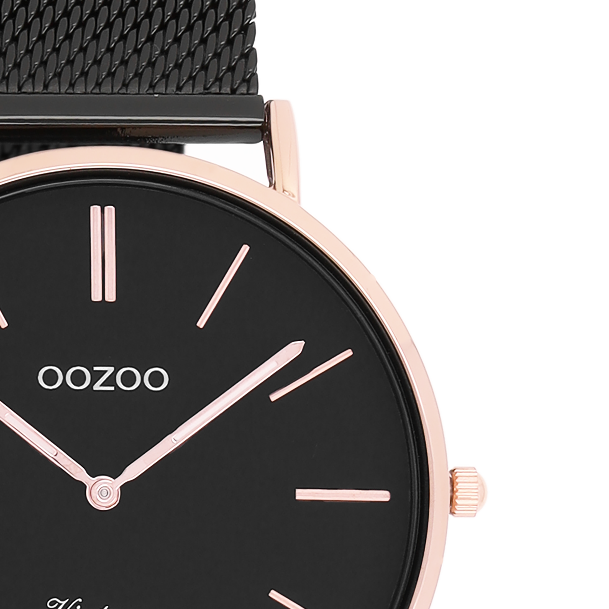 OOZOO Montre en couleur or rose avec bracelet en mesh en noir - C8869