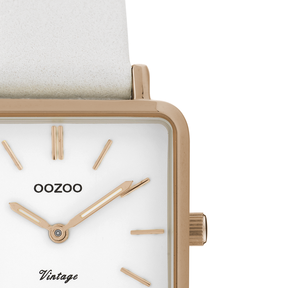 OOZOO Montre en couleur or rose avec bracelet en cuir en blanc - C9941