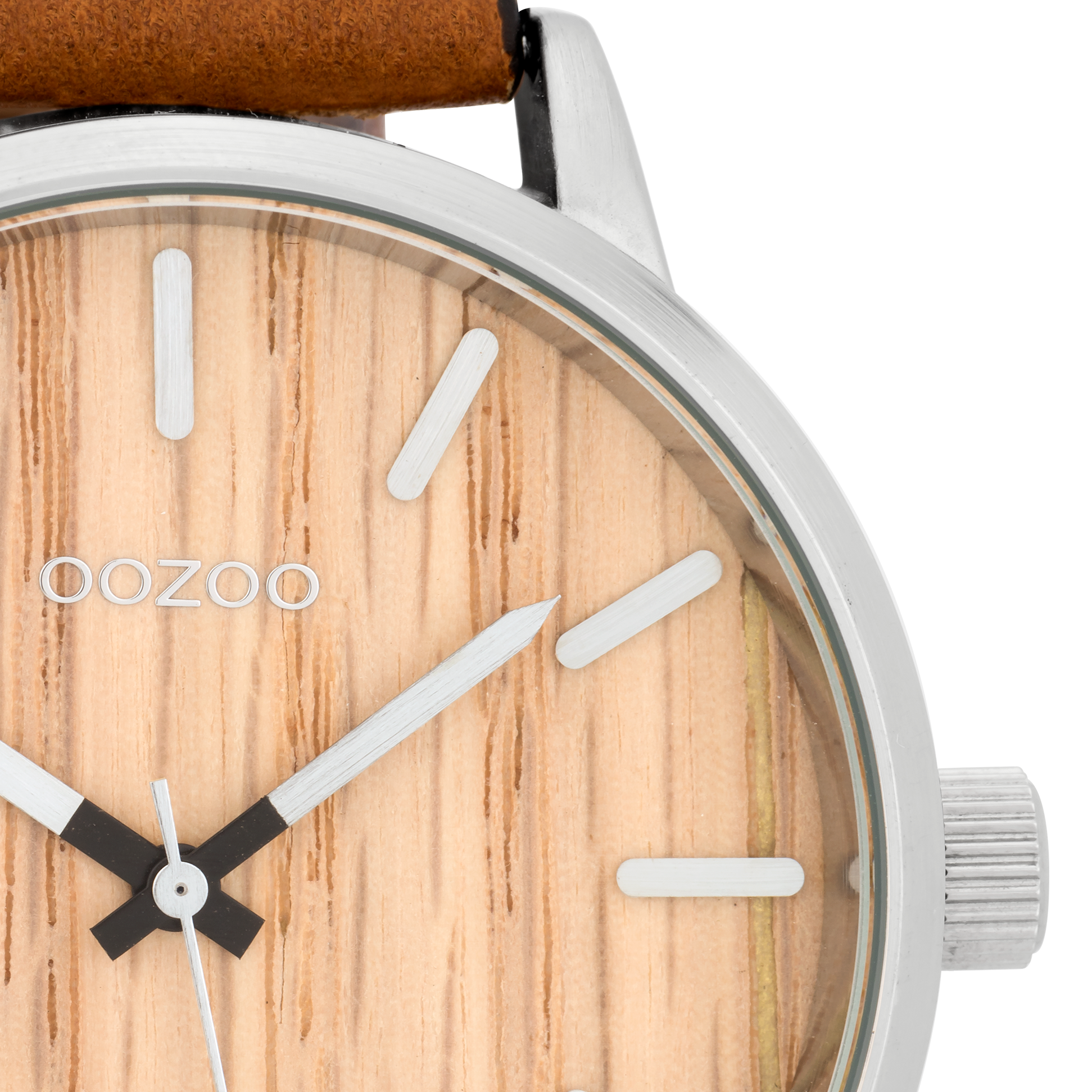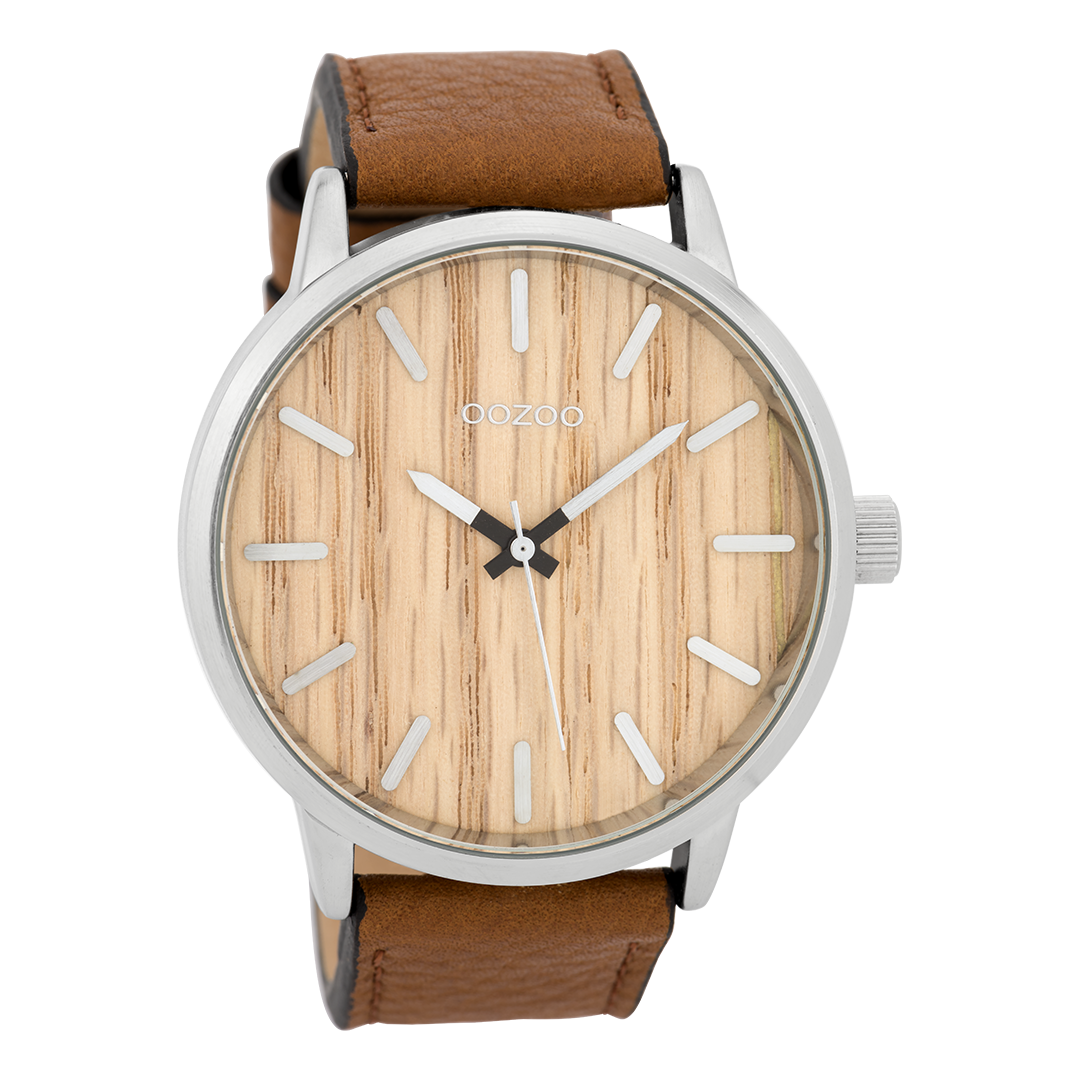 Silver coloured OOZOO watch with cognac leather strap - C9256