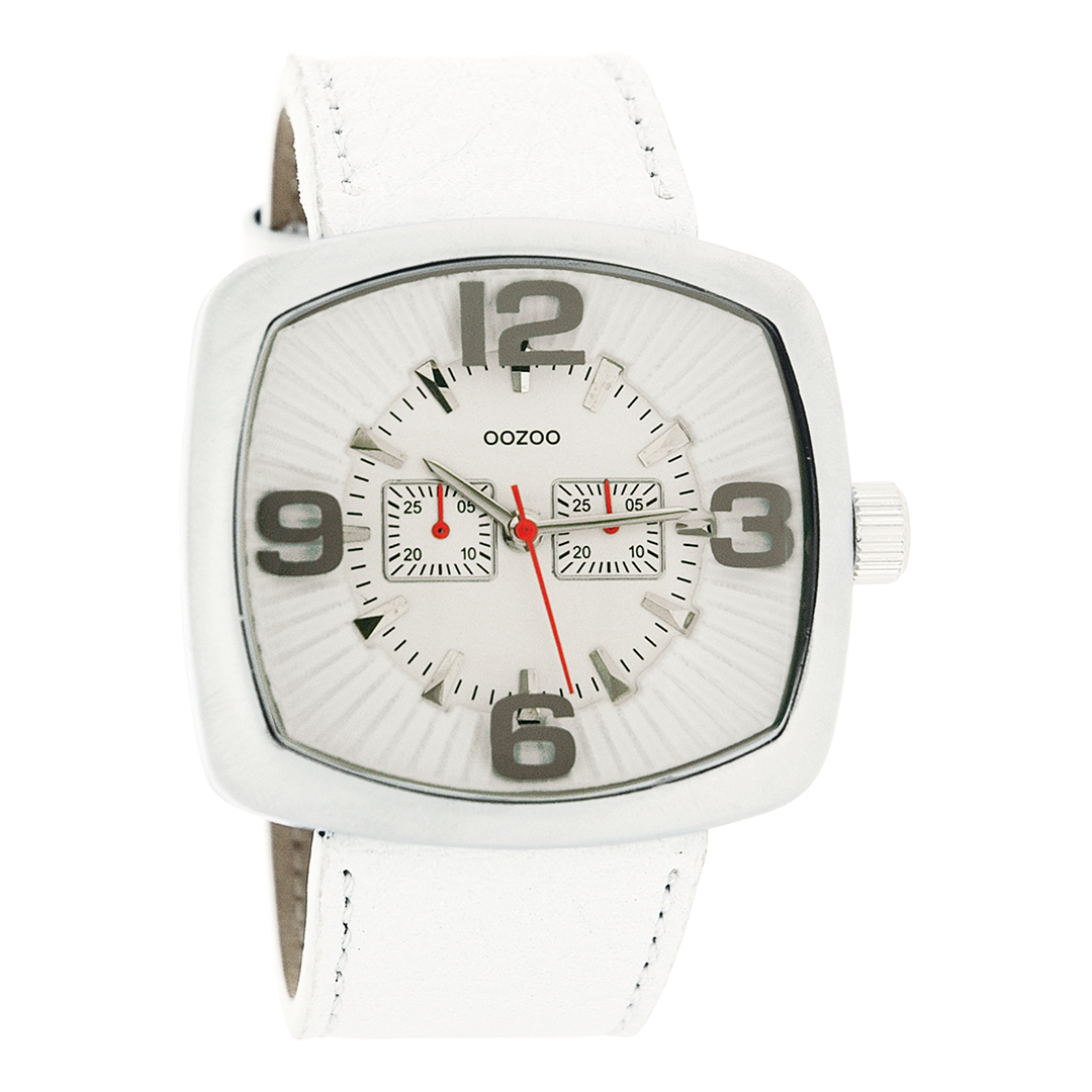 Silver coloured OOZOO watch with white leather strap - C3261