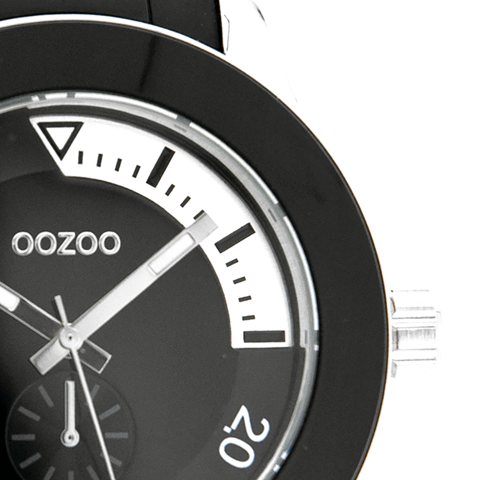 Silver coloured OOZOO watch with black plastic watch strap - C4259