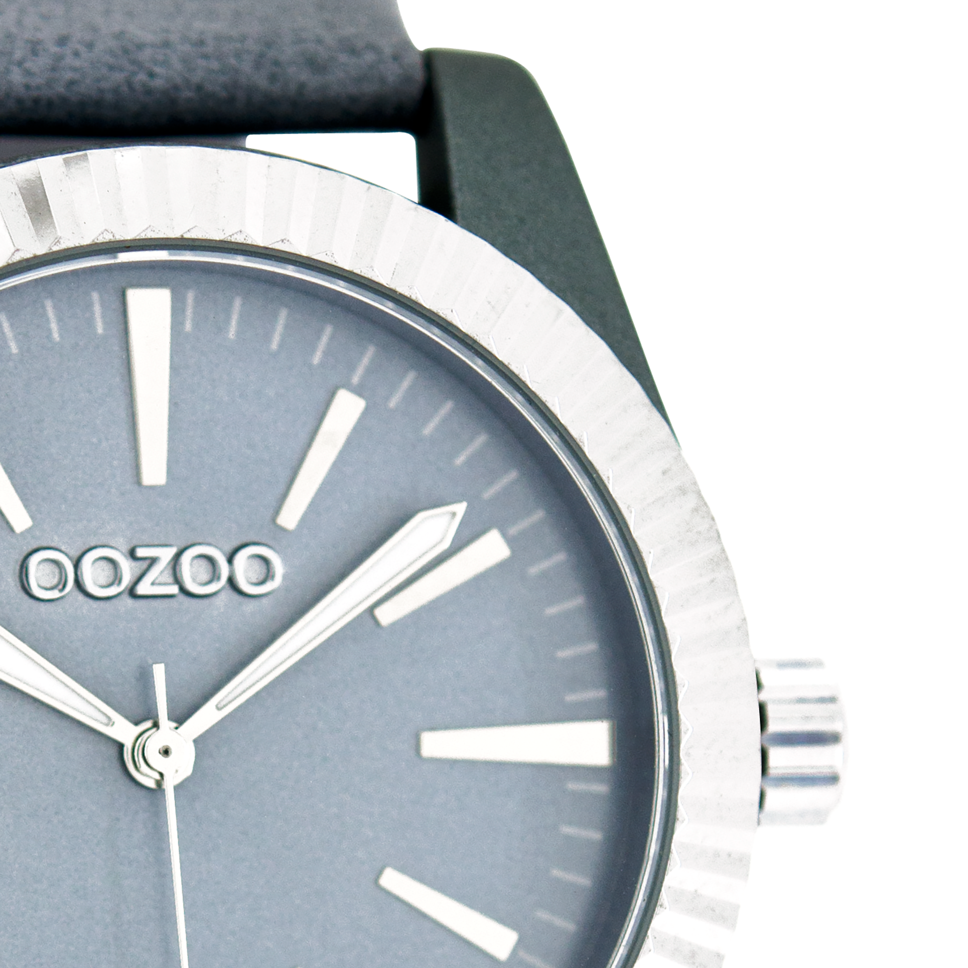 Silver coloured OOZOO watch with aqua grey leather strap - C6517