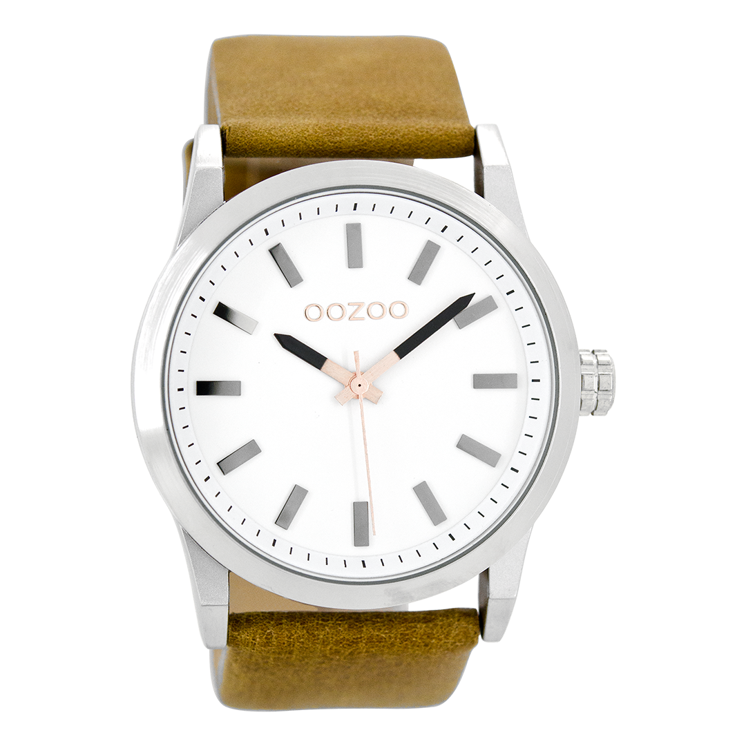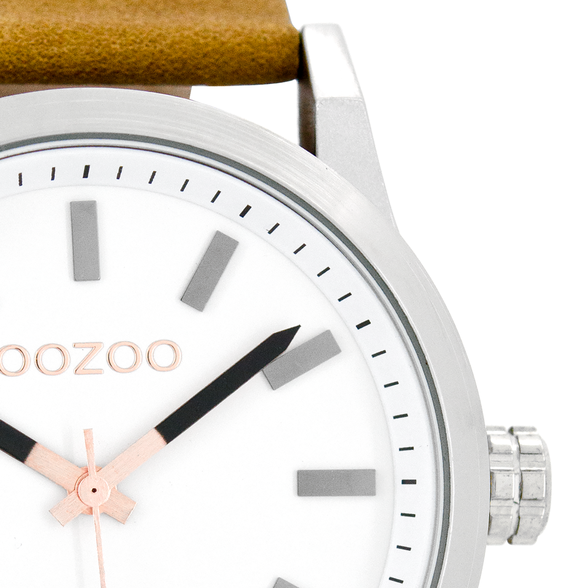 Silver coloured OOZOO watch with camel leather strap - C7035