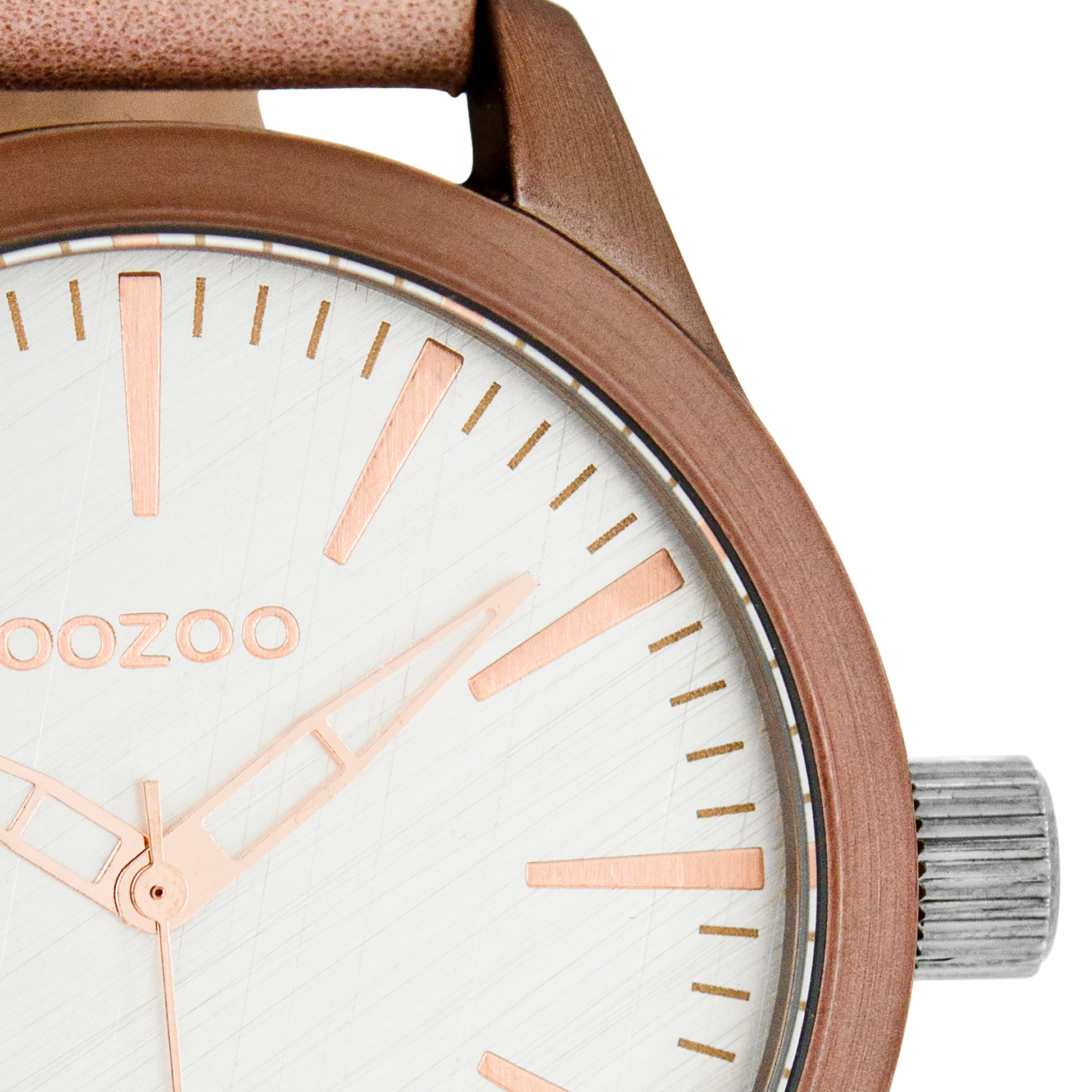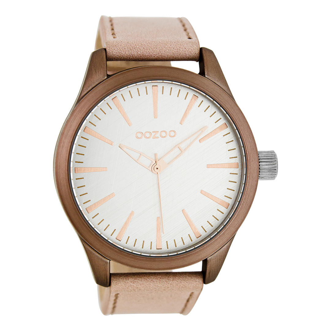 Soft pink OOZOO watch with pink grey leather strap - C7425