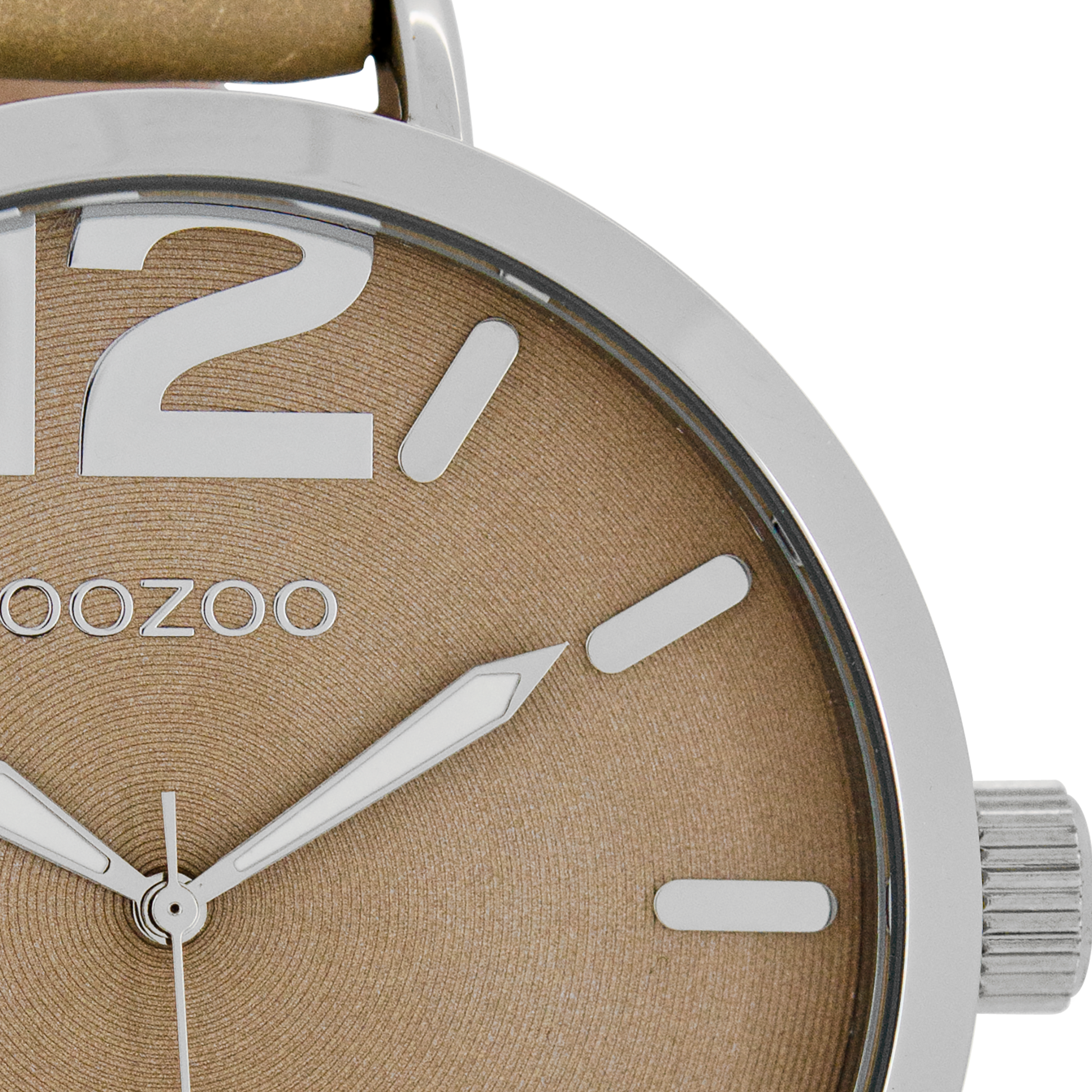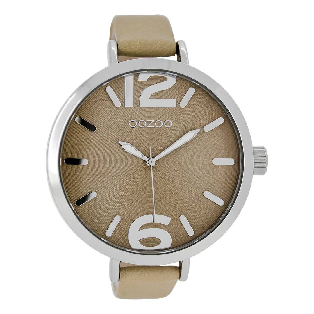 Silver coloured OOZOO watch with sand leather strap - C7510