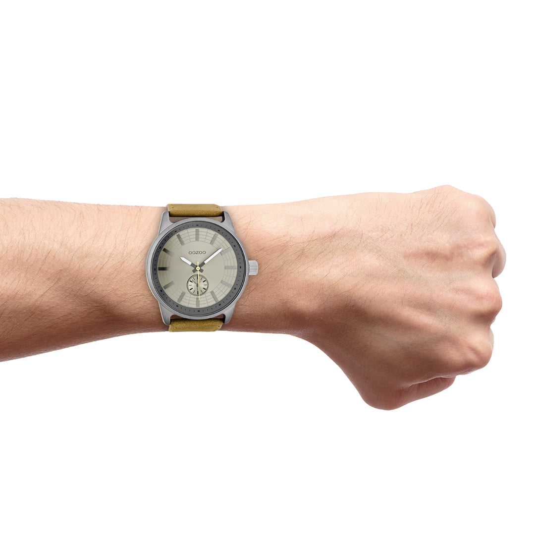 Stand out with this beautiful round gents design from the trendy OOZOO Timepieces collection. The C7820 has a stitched camel leather strap and 48 mm titanium matte watch case. You are making quite the fashion statement with this grey sunray dial, grey stripes digits and grey/white hands. This essential watch for your wardrobe has a mineral glass, stainless steel backplate and is nickel safe. This watch has a 2 Japanese movement and is covered by a 2 year warranty (see section 3 of our Refund, shipping & warranty policy).