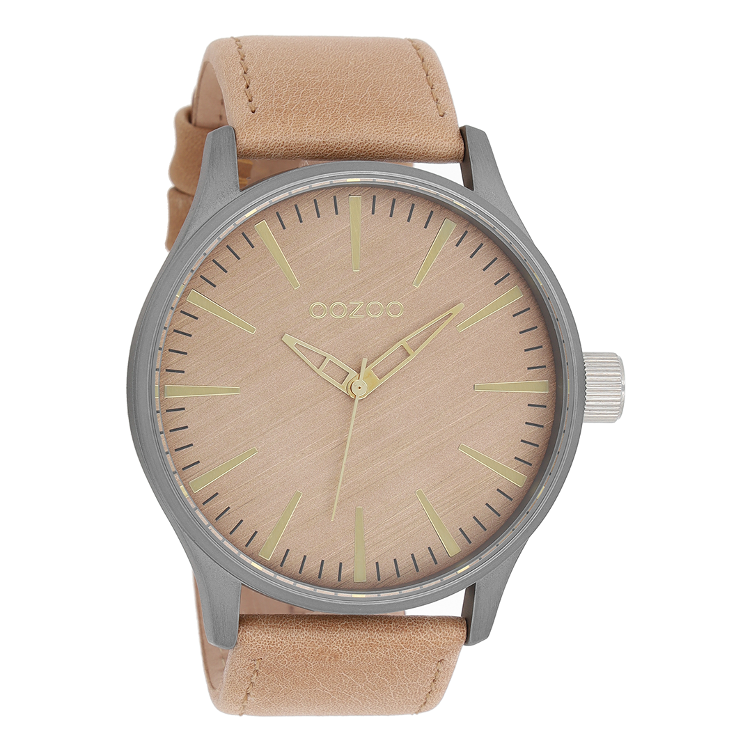 Stand out with this beautiful round gents design from the trendy OOZOO Timepieces collection. The C7860 has a stitched camel leather strap and 50 mm titanium matte watch case. You are making quite the fashion statement with this camel scratched dial, gold coloured stripes digits and matching hands. This essential watch for your wardrobe has a mineral glass, stainless steel backplate and is nickel safe. This watch has a 2 Japanese movement and is covered by a 2 year warranty (see section 3 of our Refund, shipping & warranty policy).