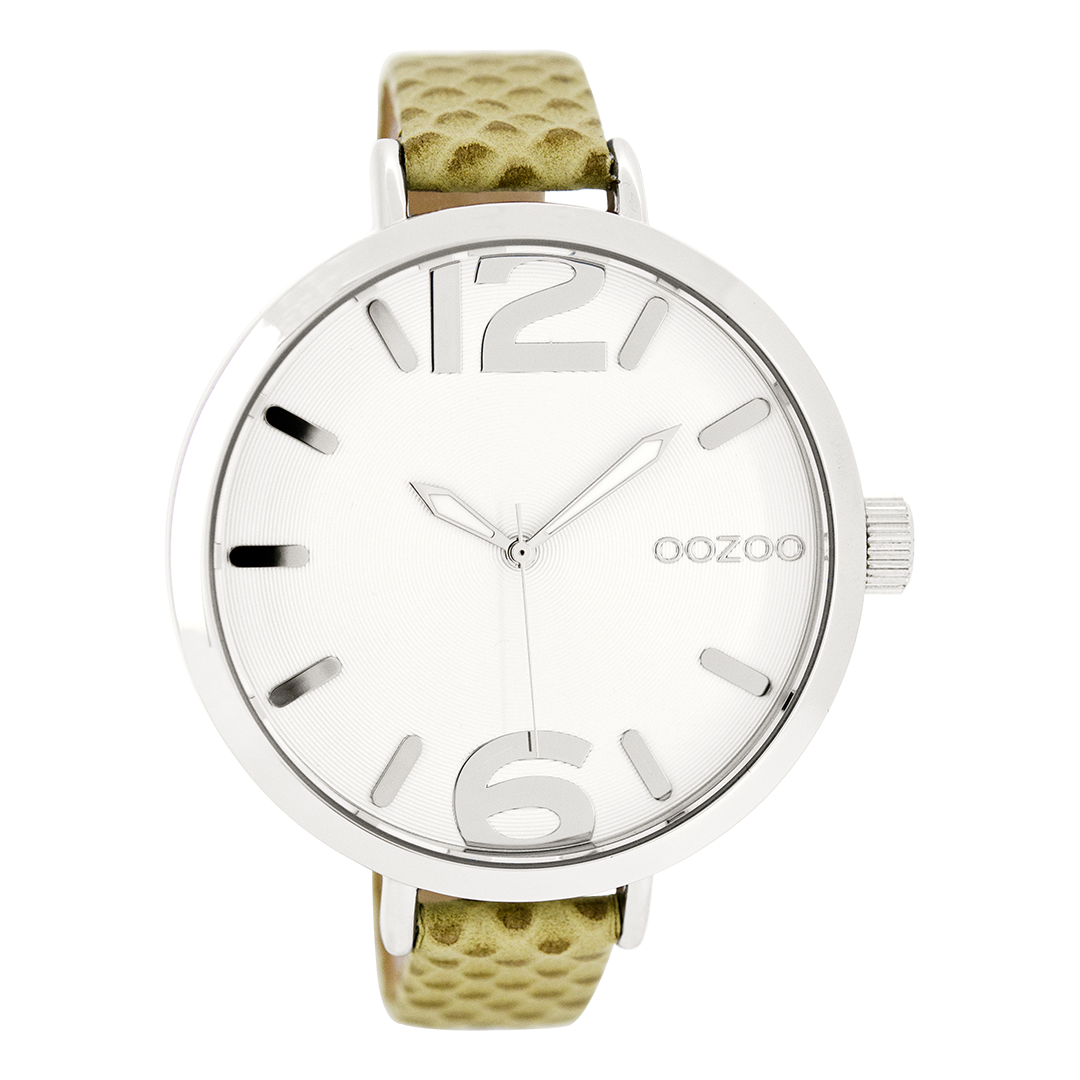 Stand out with this beautiful round ladies design from the trendy OOZOO Timepieces collection. The C7956 has a croco beige leather strap and 48 mm silver coloured metal watch case. You are making quite the fashion statement with this white dial, silver coloured stripes and numbers digits and silver coloured/white hands. This essential watch for your wardrobe has a mineral glass, stainless steel backplate and is nickel safe. This watch has a 2 Japanese movement and is covered by a 2 year warranty (see section 3 of our Refund, shipping & warranty policy).