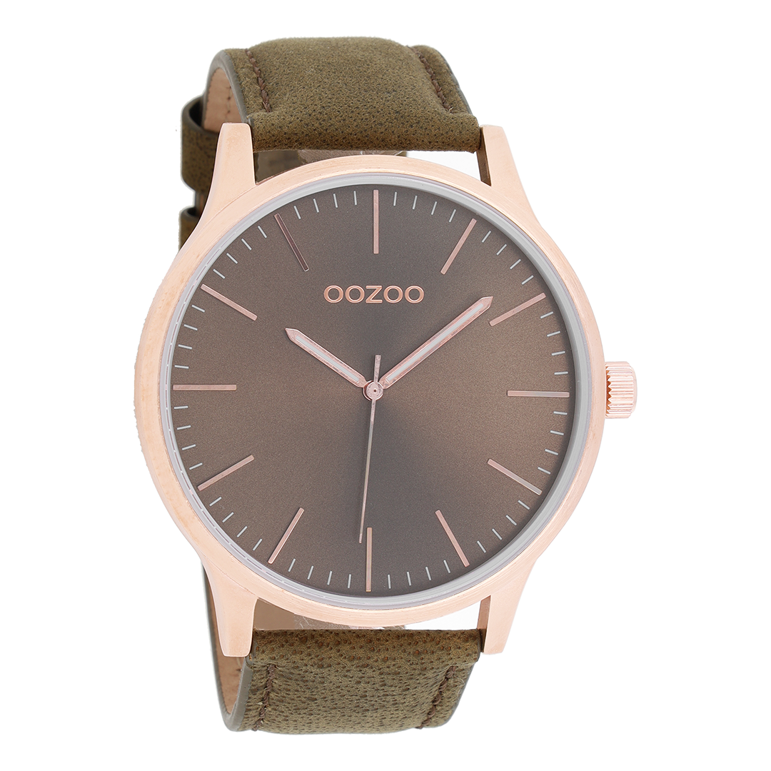 Rose gold coloured OOZOO watch with brown leather strap - C8538