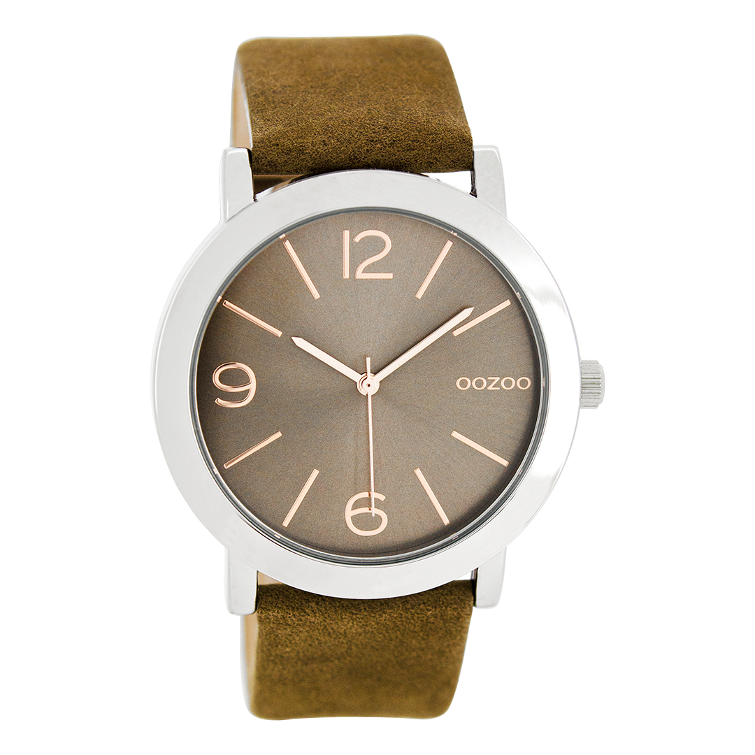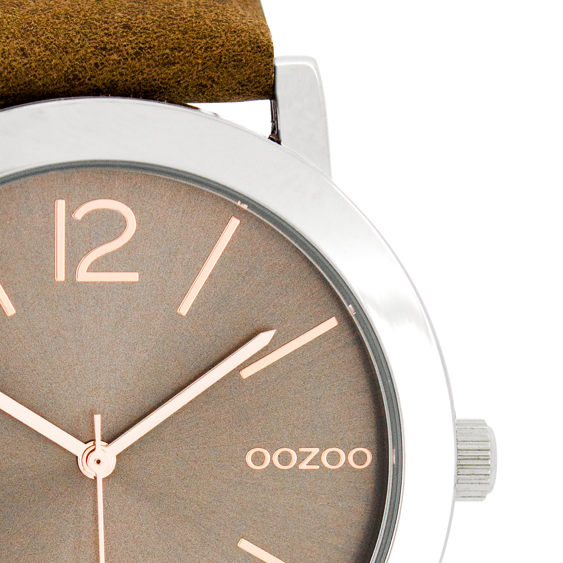 Silver coloured OOZOO watch with brown leather strap - C8713