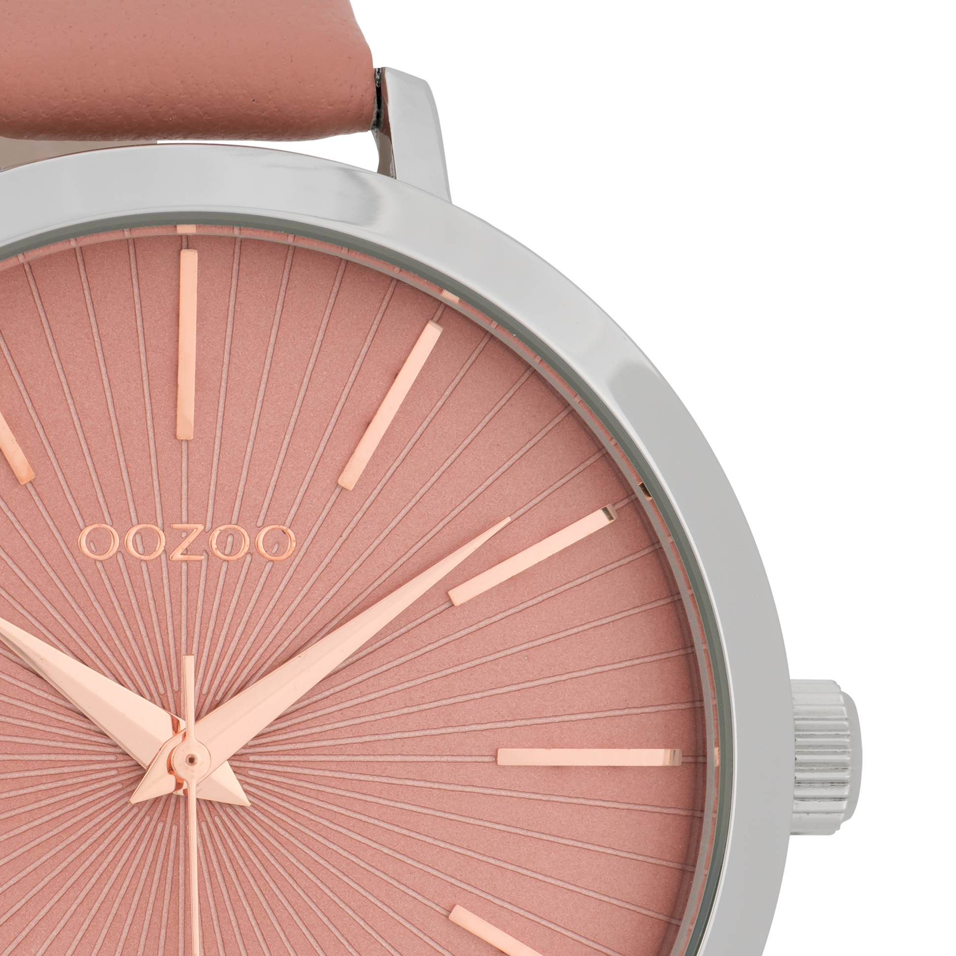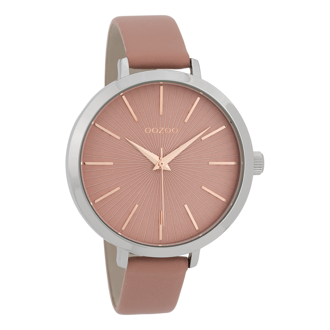 Silver coloured OOZOO watch with warm pink leather strap - C9672