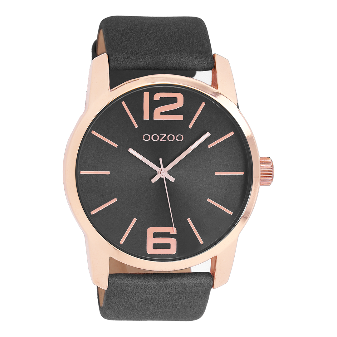 Rose gold coloured OOZOO watch with black leather strap - C9734