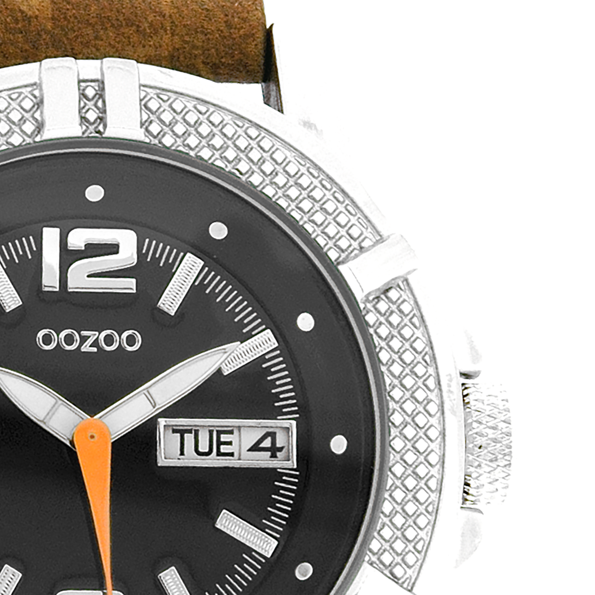 Stand out with this beautiful round gents design from the trendy OOZOO Timepieces collection. The C4107 has a stitched cognac leather strap and 42 mm silver coloured metal watch case. You are making quite the fashion statement with this dark brown dial, silver coloured stripes and numbers digits and silver coloured/white/orange hands. This essential watch for your wardrobe has a mineral glass, stainless steel backplate and is nickel safe. This watch has a 2 Japanese movement and is covered by a 2 year warranty (see section 3 of our Refund, shipping & warranty policy).