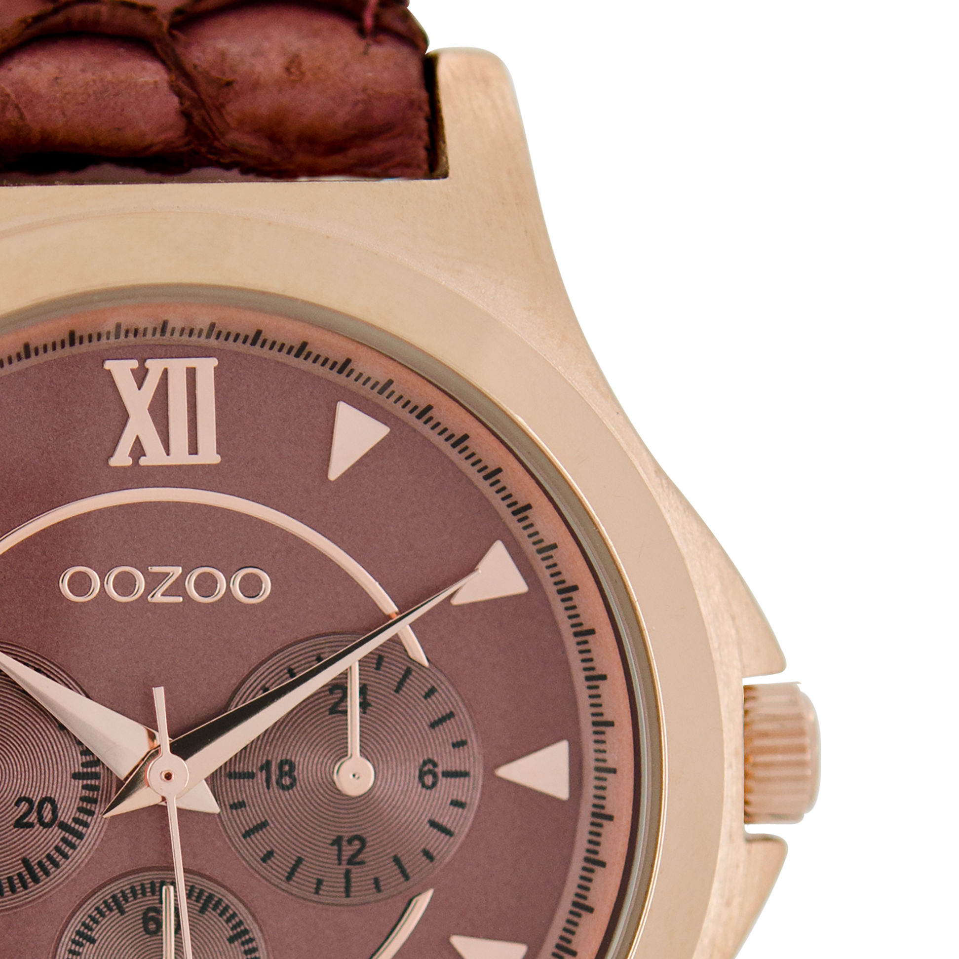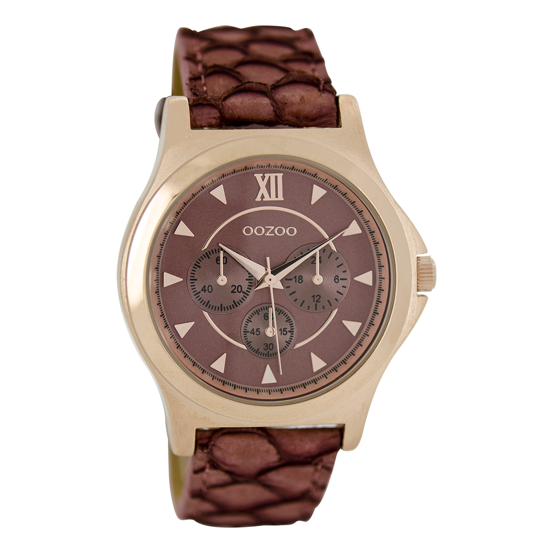 Stand out with this beautiful round ladies design from the trendy OOZOO Timepieces collection. The C6572 has a snake coral coloured leather strap and 40 mm rose gold coloured metal watch case. You are making quite the fashion statement with this coral coloured chrono dial, rose gold coloured Roman numerals digits and rose gold coloured hands. This essential watch for your wardrobe has a mineral glass, stainless steel backplate and is nickel safe. This watch has a 2 Japanese movement and is covered by a 2 year warranty (see section 3 of our Refund, shipping & warranty policy).