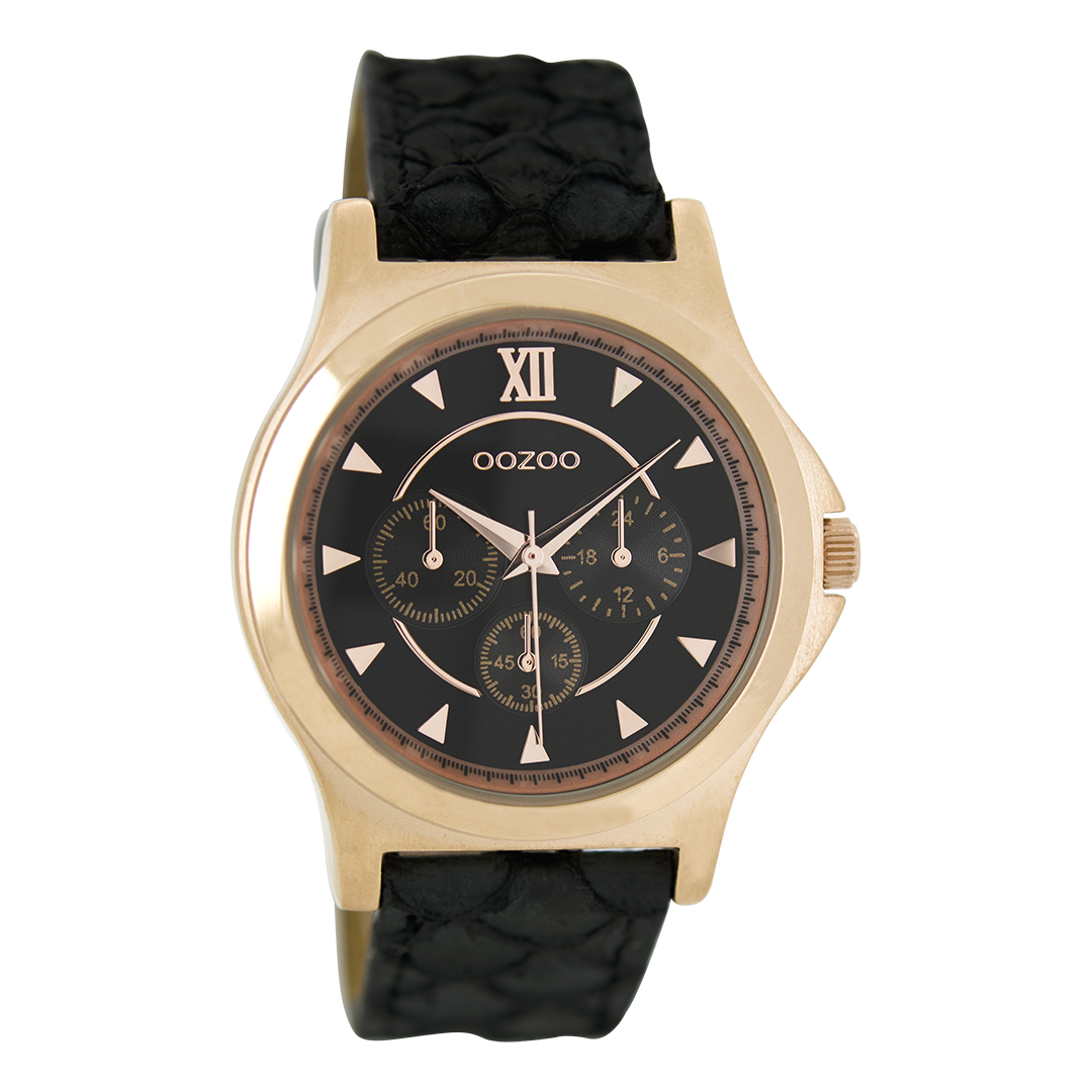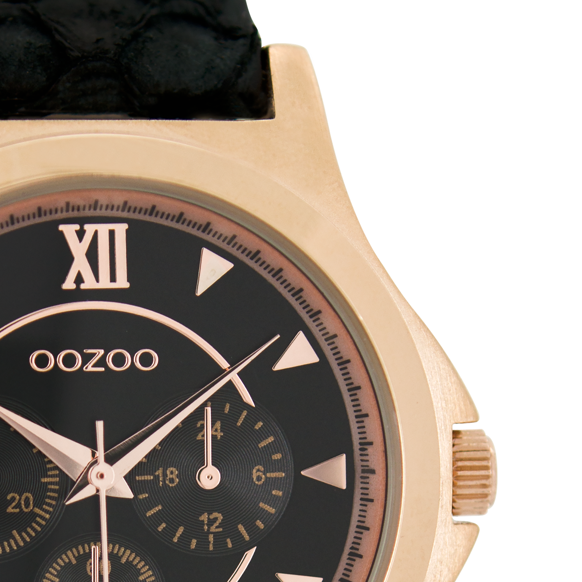 Rose gold coloured OOZOO watch with black leather strap - C6574