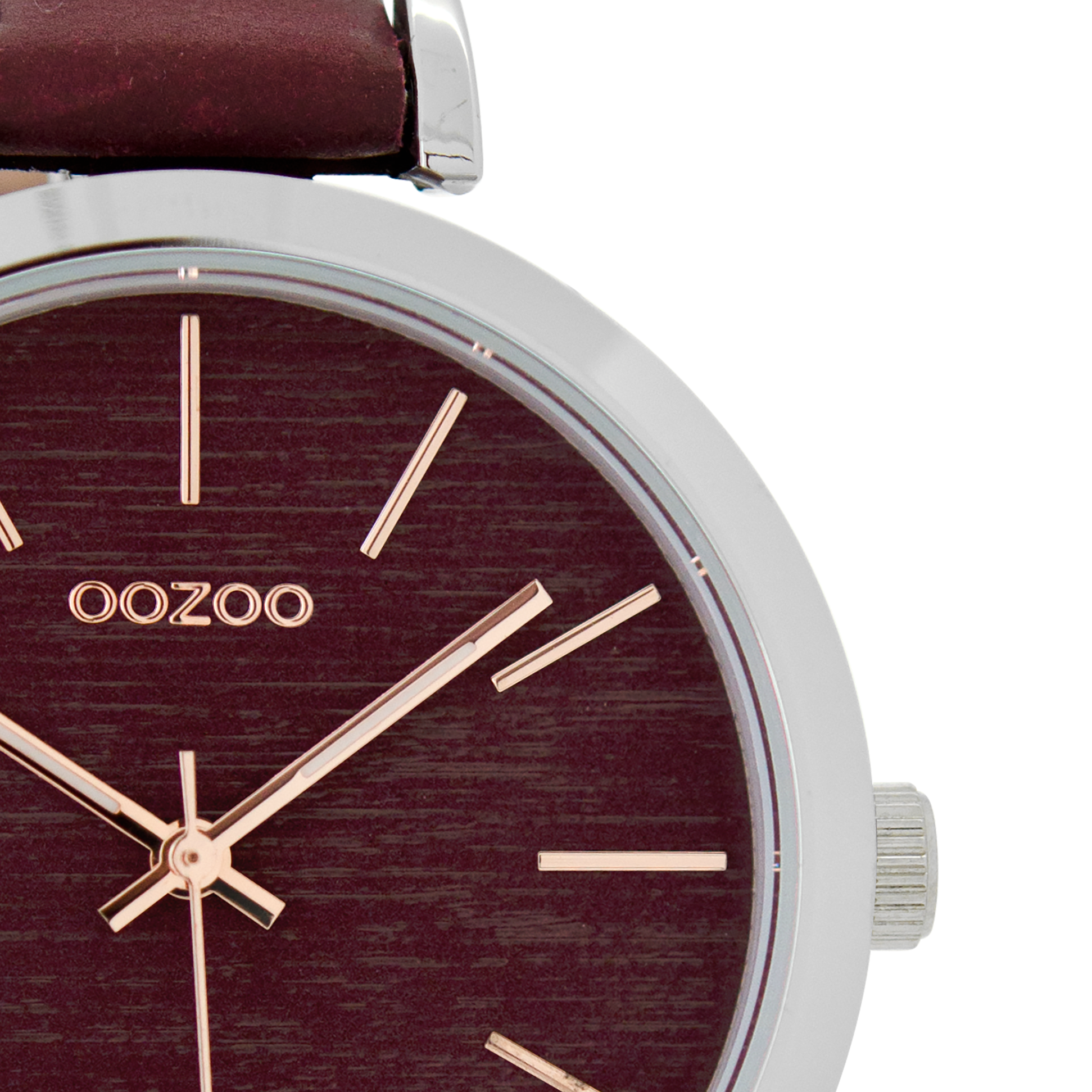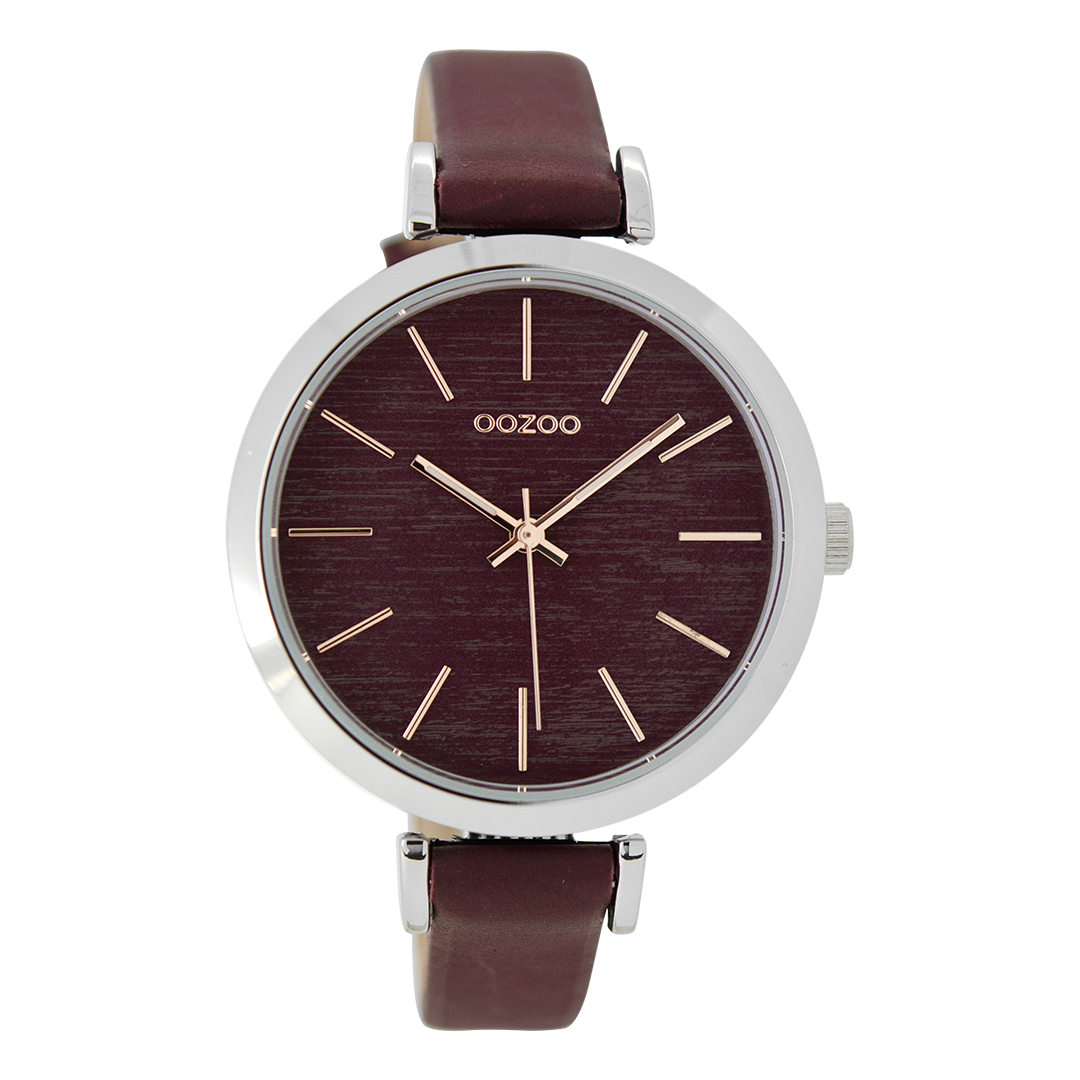 Silver coloured OOZOO watch with burgundy leather strap - C9137