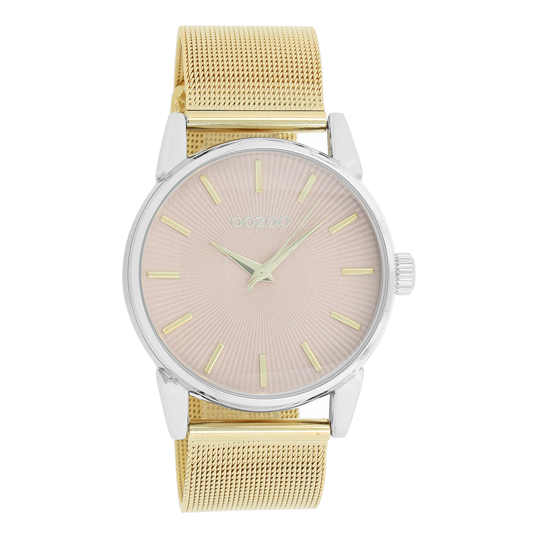 Silver coloured OOZOO watch with gold coloured metal mesh bracelet - C9546