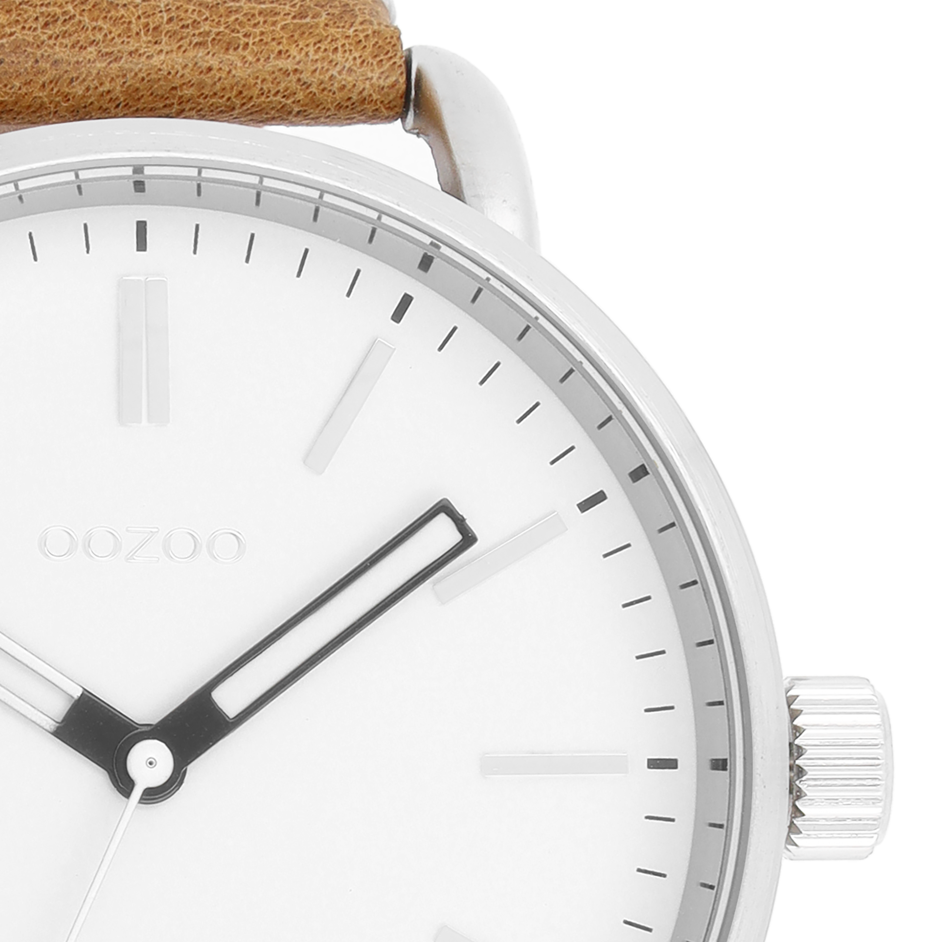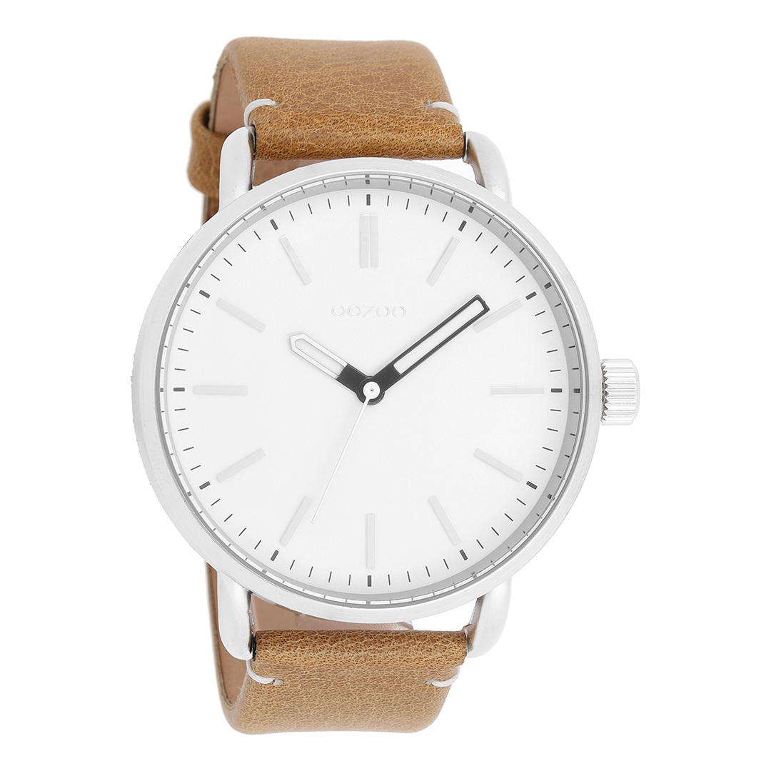 Silver coloured OOZOO watch with camel leather strap - C9631