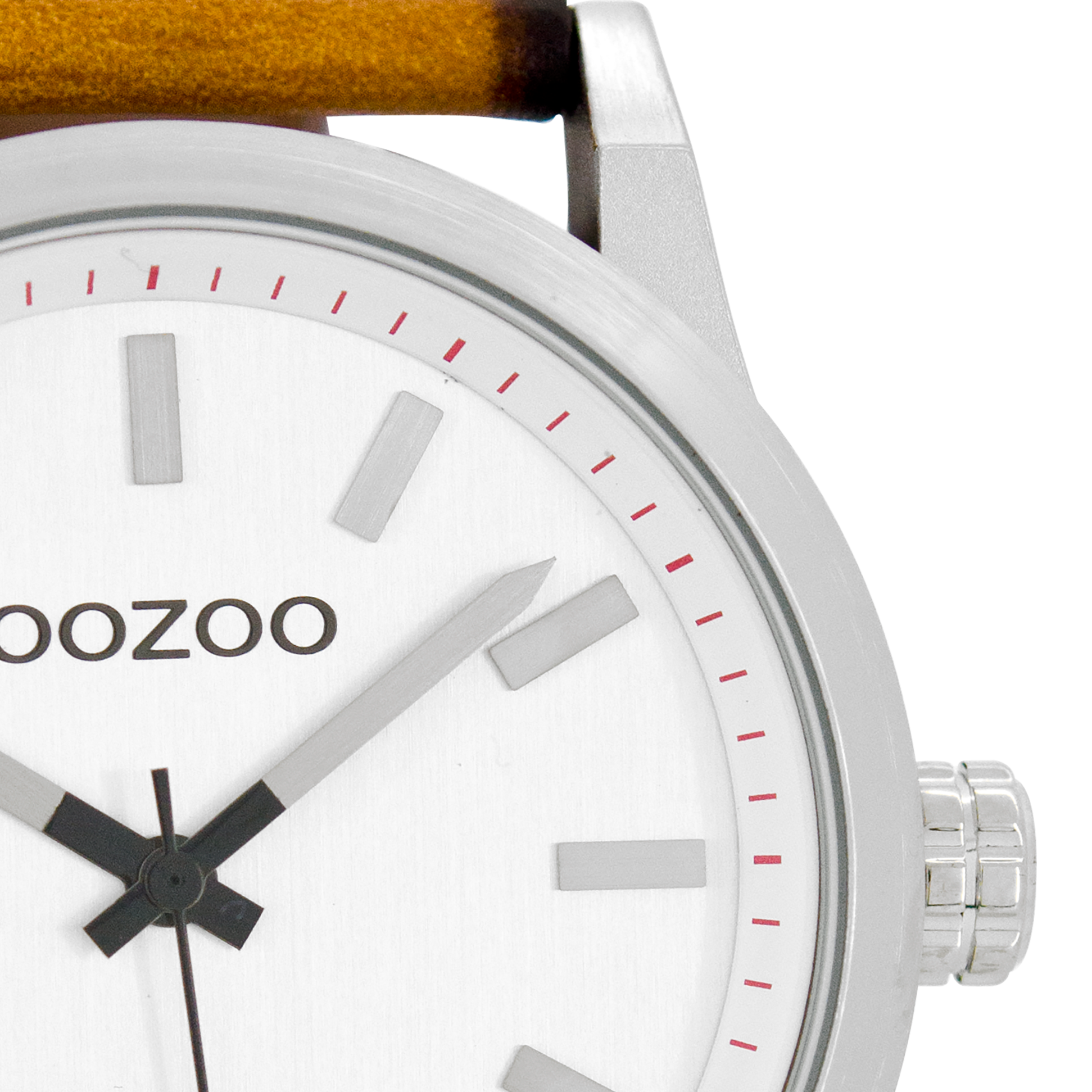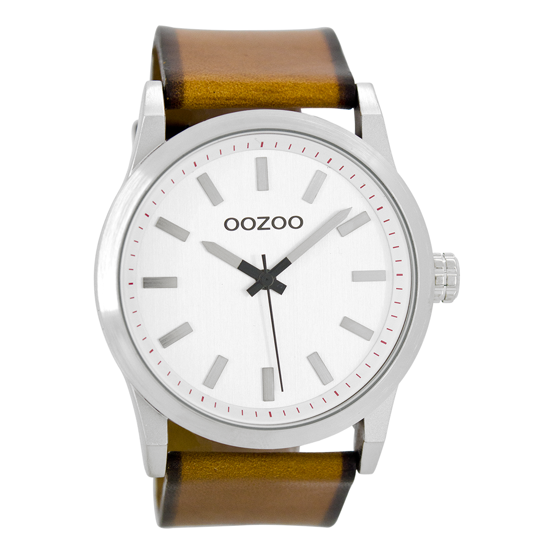 Silver coloured OOZOO watch with cognac leather strap - C7036