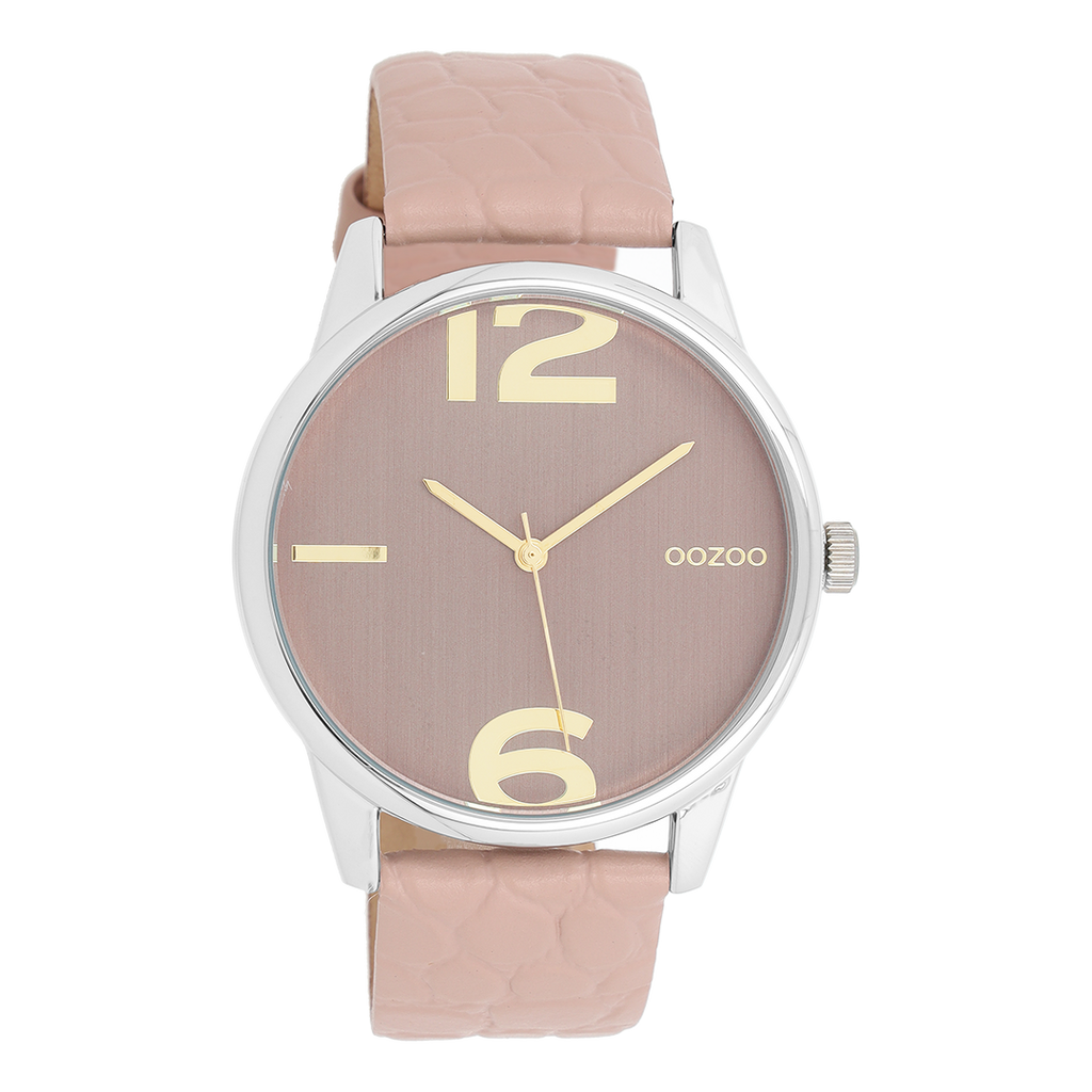 Zilverkleurige OOZOO horloge met zacht roze leren band - C10376