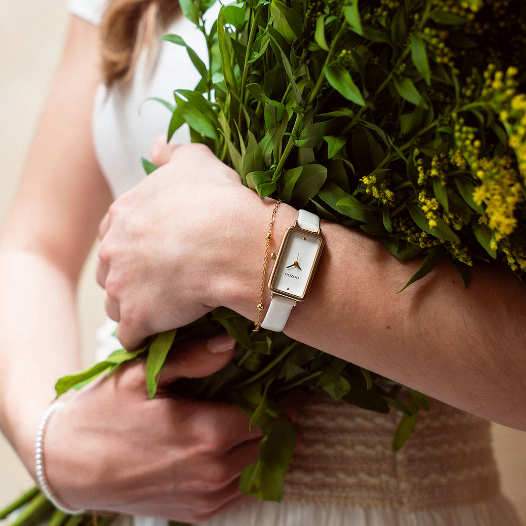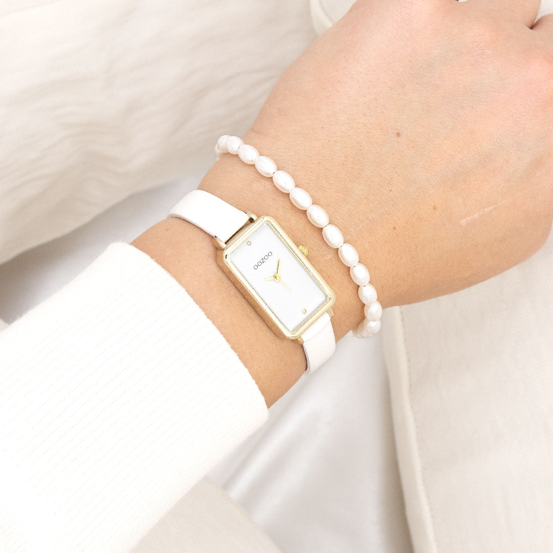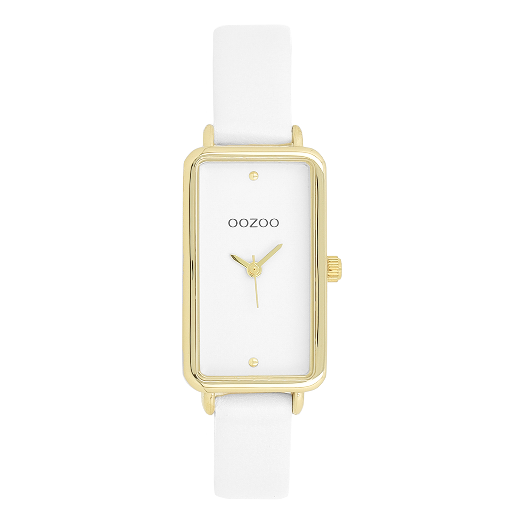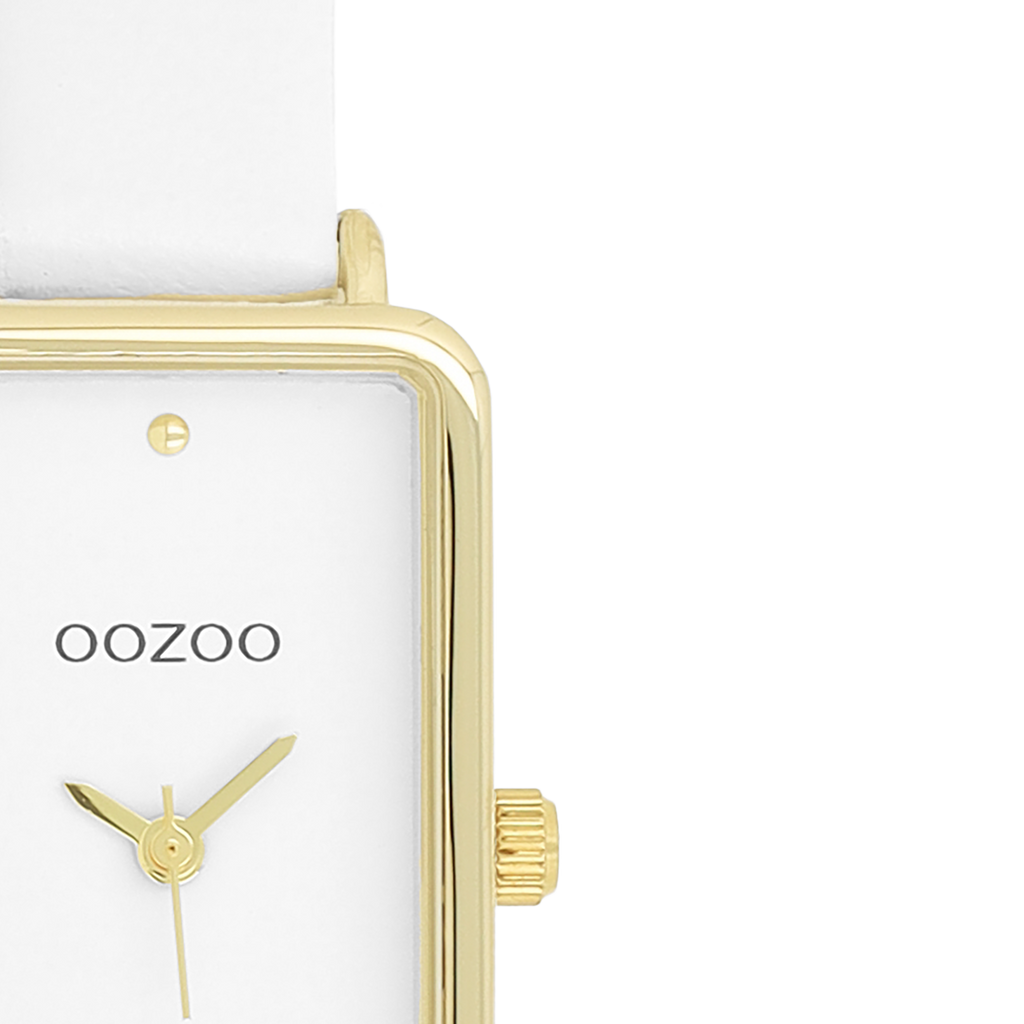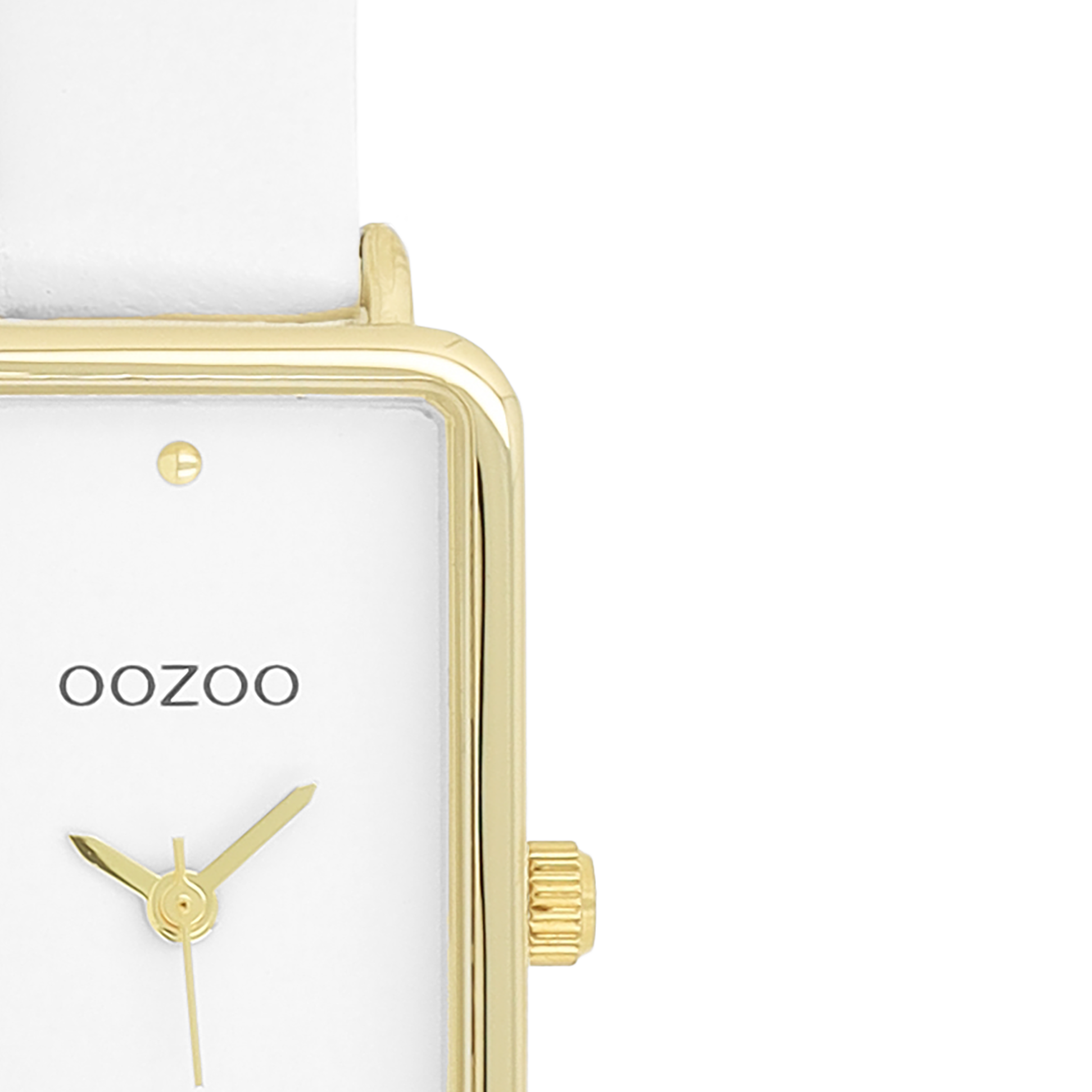Goudkleurige OOZOO horloge met witte leren band - C11530