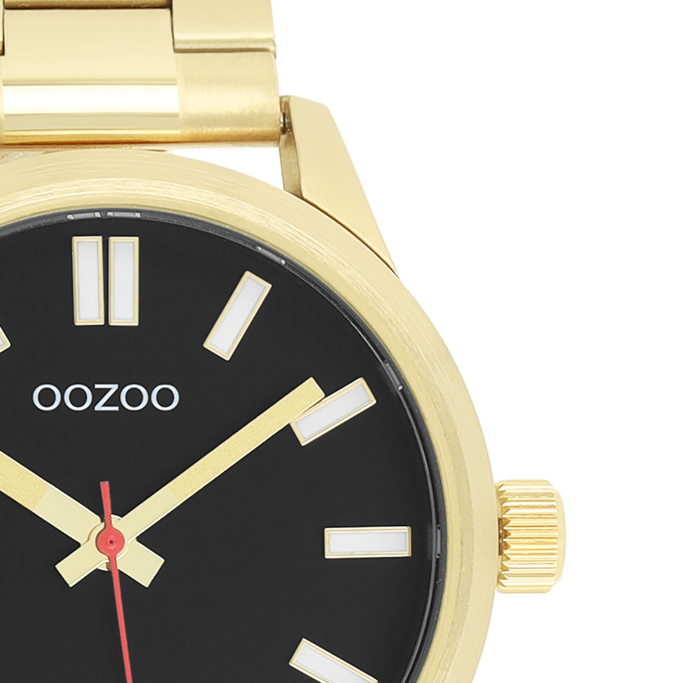 Stand out with this beautiful round gents design from the trendy OOZOO Timepieces collection. The C11617 has a gold coloured stainless steel bracelet and 40 mm gold coloured metal watch case. You are making quite the fashion statement with this black dial, glow in the dark stripes digits and gold coloured/red hands. This essential watch for your wardrobe has a mineral glass, stainless steel backplate and is nickel safe. This watch has a 2ATM Japanese movement and is covered by a 2 year warranty (see section 3 of our Refund, shipping & warranty policy).