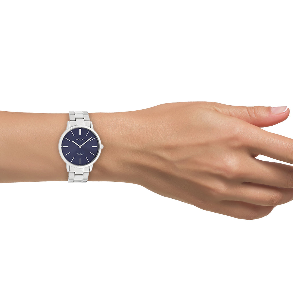 Sophistication and elegance are two elements of our beautiful OOZOO Vintage Classics. This classic round design with a contemporary twist is something for everyone. This unisex watch is the perfect combination of comfort and fashion with its 38 mm silver coloured metal watch case and blue with sunray dial. The matte/shiny silver coloured stainless steel bracelet makes this watch an all-time classic which you can wear with every occasion. The dial has silver coloured stripes digits and matching hands. The C20029 is a must have for your every-wear. The mineral glass lays in a 6,9 mm slim metal watch case with IP-plating. This design has a stainless steel backplate and is nickel safe. This watch has a 2 Japanese movement and is covered by a 2 year warranty (see section 3 of our Refund, shipping & warranty policy).