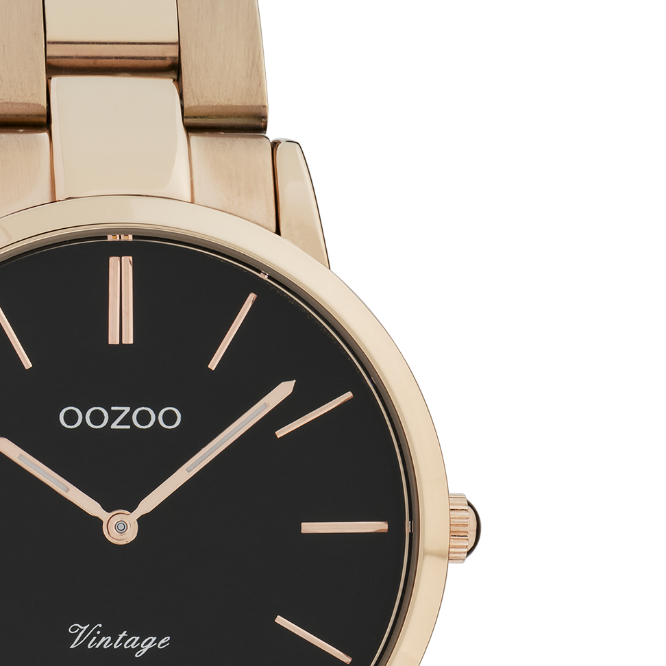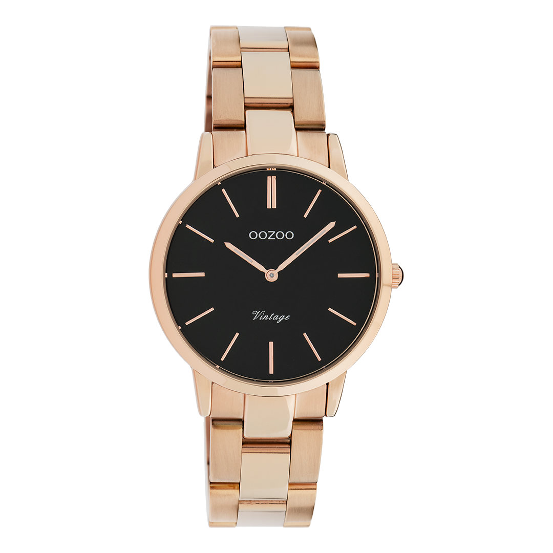 Sophistication and elegance are two elements of our beautiful OOZOO Vintage Classics. This classic round design with a contemporary twist is something for everyone. This unisex watch is the perfect combination of comfort and fashion with its 34 mm rose gold coloured metal watch case and black dial. The matte/shiny rose gold coloured stainless steel bracelet makes this watch an all-time classic which you can wear with every occasion. The dial has rose gold coloured stripes digits and matching hands. The C20049 is a must have for your every-wear. The mineral glass lays in a 6,9 mm slim metal watch case with IP-plating. This design has a stainless steel backplate and is nickel safe. This watch has a 2 Japanese movement and is covered by a 2 year warranty (see section 3 of our Refund, shipping & warranty policy).