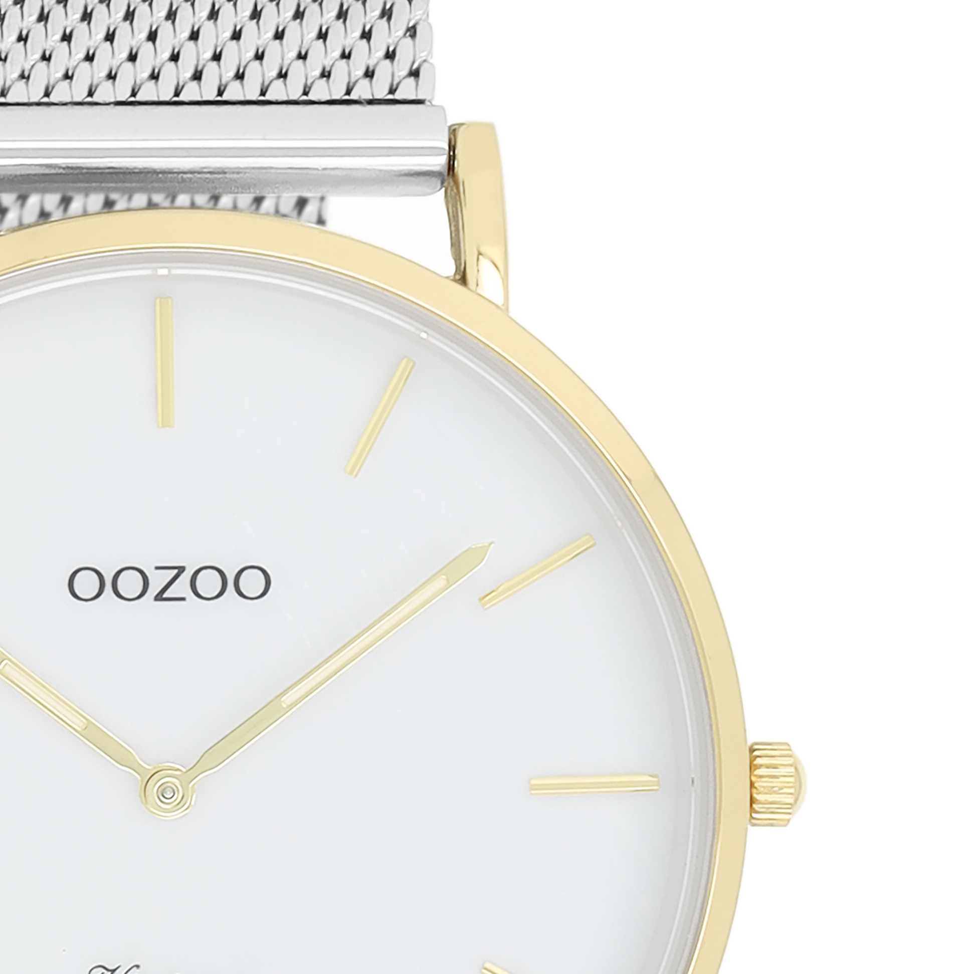 Goudkleurige OOZOO horloge met zilverkleurige metalen mesh armband - C20119