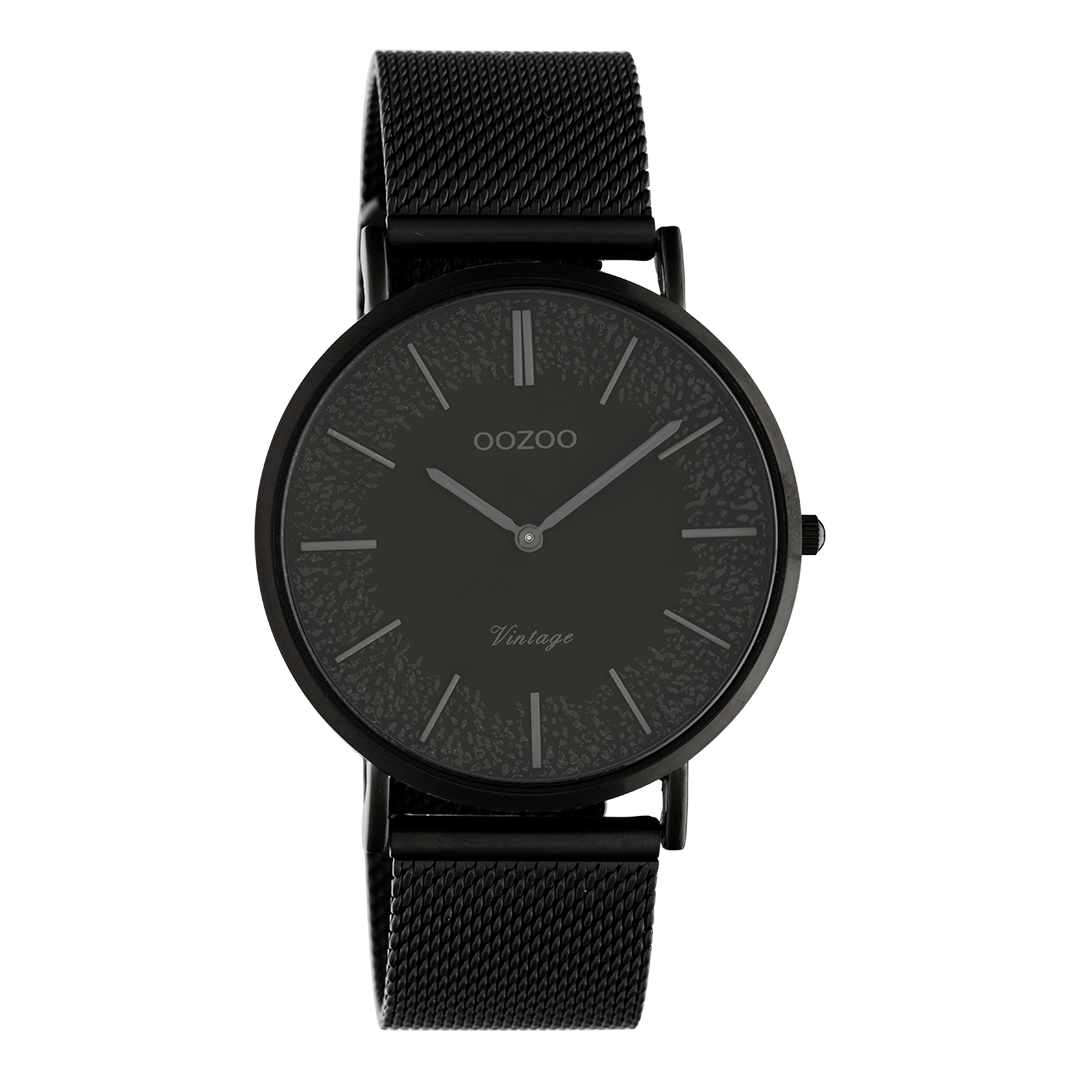 Zwarte OOZOO horloge met metalen mesh armband - C20144