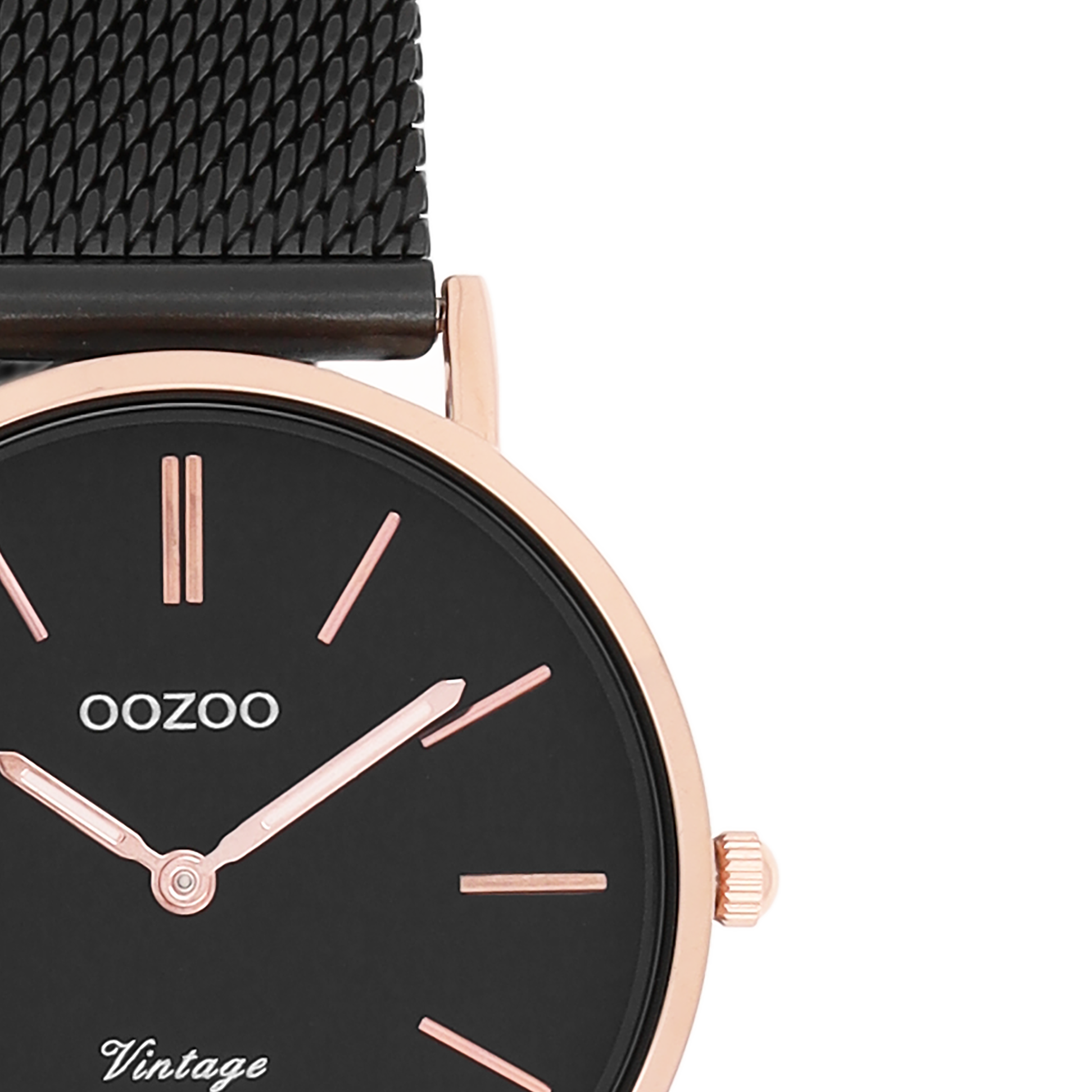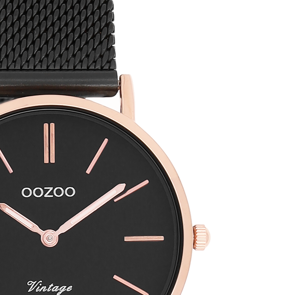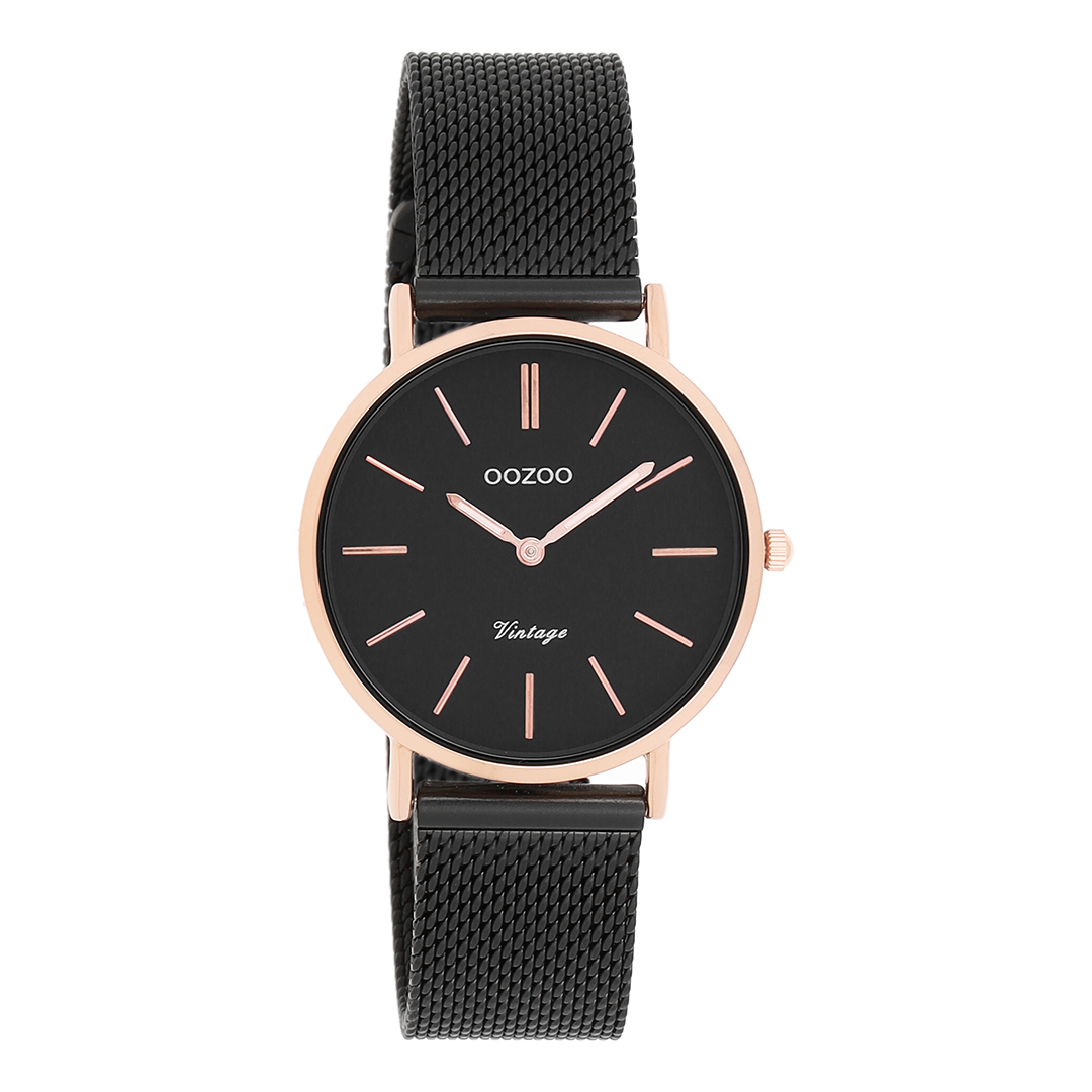 Rosé goudkleurige OOZOO horloge met zwarte metalen mesh armband - C8871