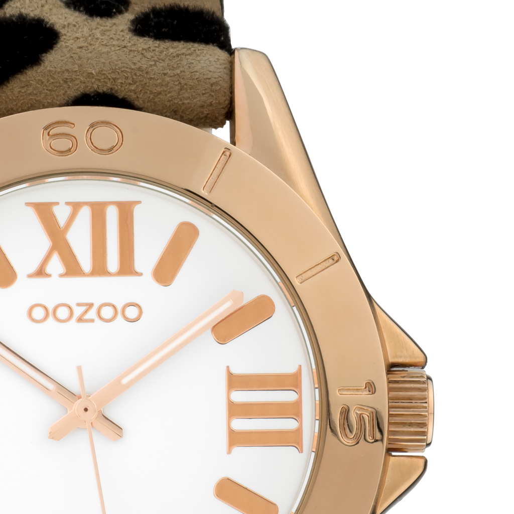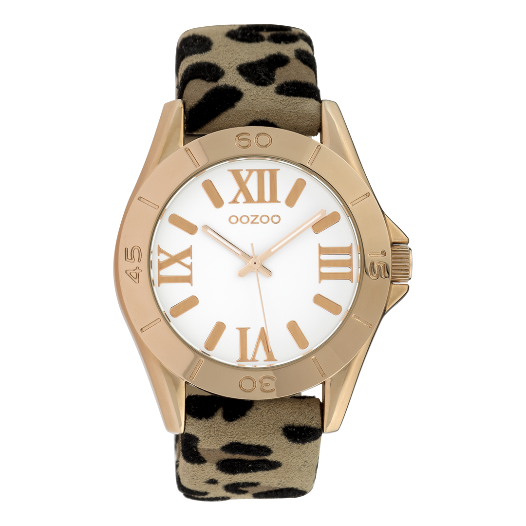 Val op met dit prachtige ronde dames design uit de trendy OOZOO Timepieces collectie. De C9782 heeft een luipaard print bruine leren band en 40 mm rosé goudkleurige metalen horlogekast. Maak een fashion statement met deze witte wijzerplaat, rosé goudkleurige strepen en romeinse cijfers tijdsaanduidingen en bijpassende wijzers. Dit horloge is een musthave voor jouw garderobe en heeft een mineraalglas, stainless steel achterplaat en is nikkel-safe. Dit horloge heeft een 2 Japans uurwerk en wordt gedekt door een garantie van 2 jaar (zie sectie 3 van onze Refund, shipping & warranty policy).