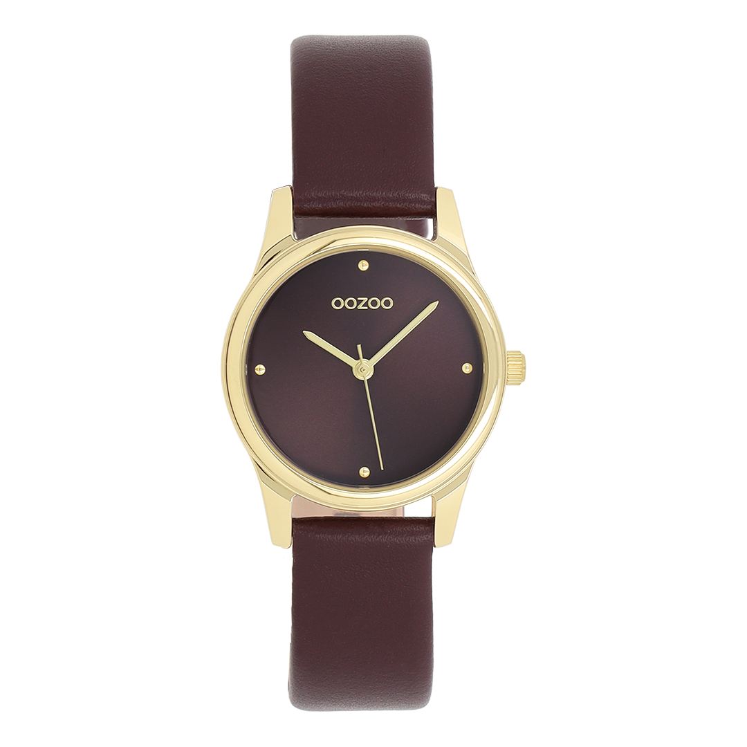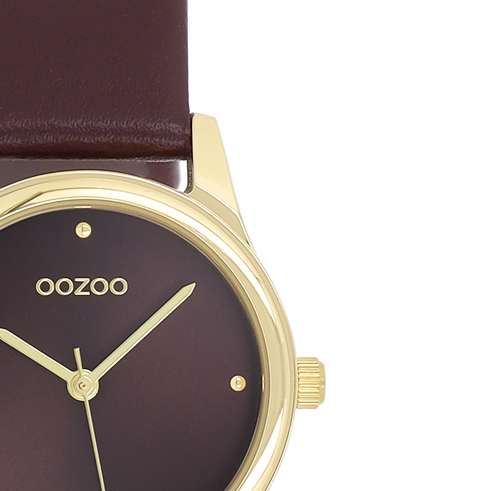 Gold coloured OOZOO watch with fig red leather strap - C11627