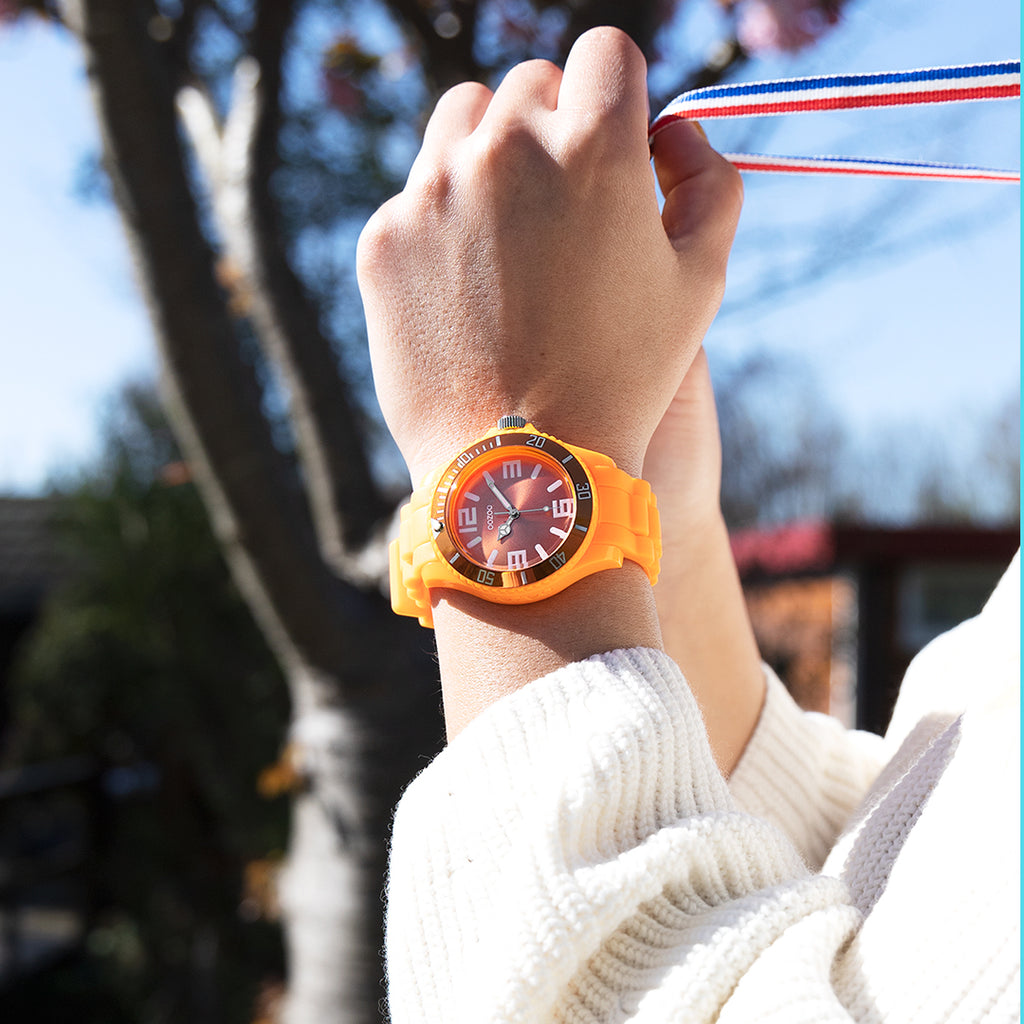 Stand out with this beautiful round unisex design from the trendy OOZOO Timepieces collection. The C4287 has a fluo orange rubber strap and 43 mm fluo orange plastic watch case. You are making quite the fashion statement with this fluo orange sunray dial, white stripes and numbers digits and silver coloured/white hands. This essential watch for your wardrobe has a mineral glass, stainless steel backplate and is nickel safe. This watch has a 2 Japanese movement and is covered by a 2 year warranty (see section 3 of our Refund, shipping & warranty policy).
