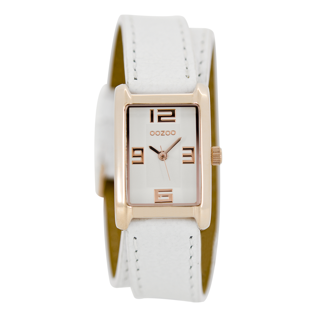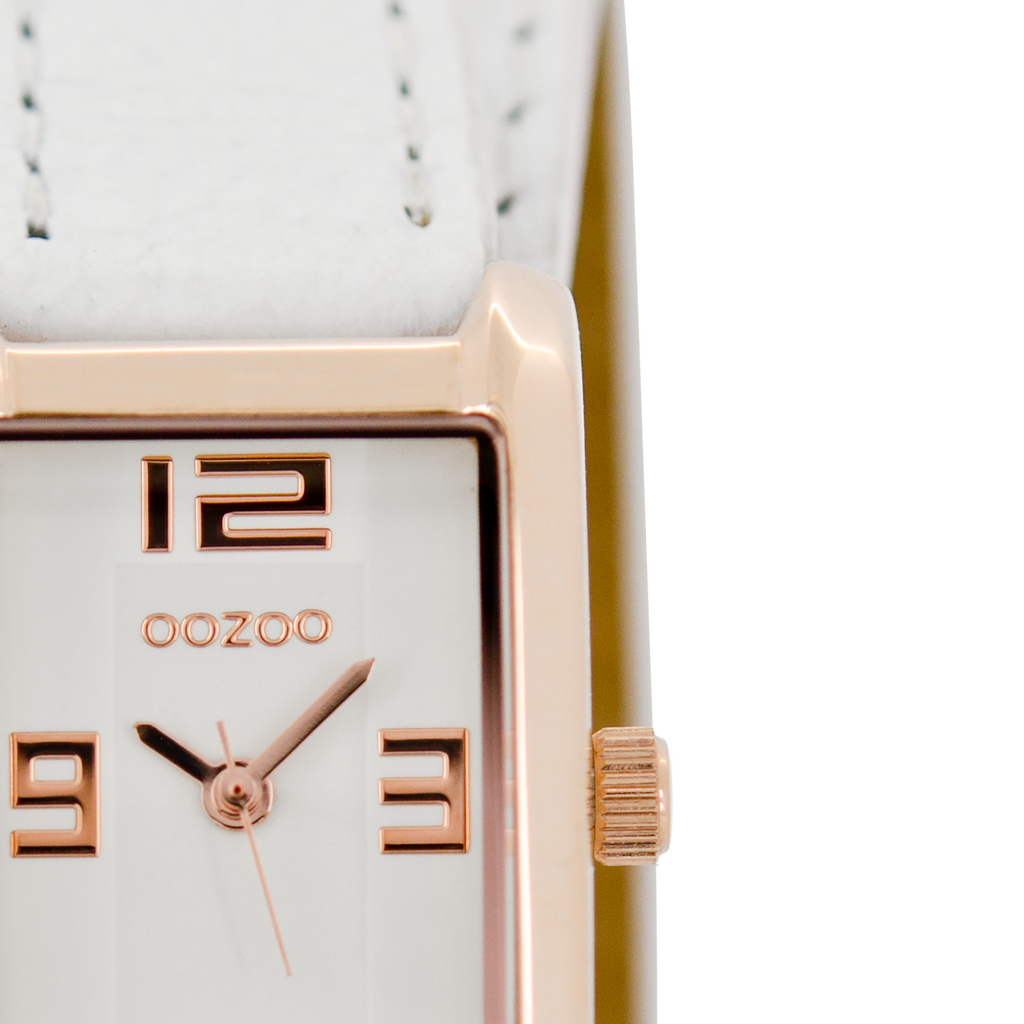 Rose gold coloured OOZOO watch with white leather strap - C6635