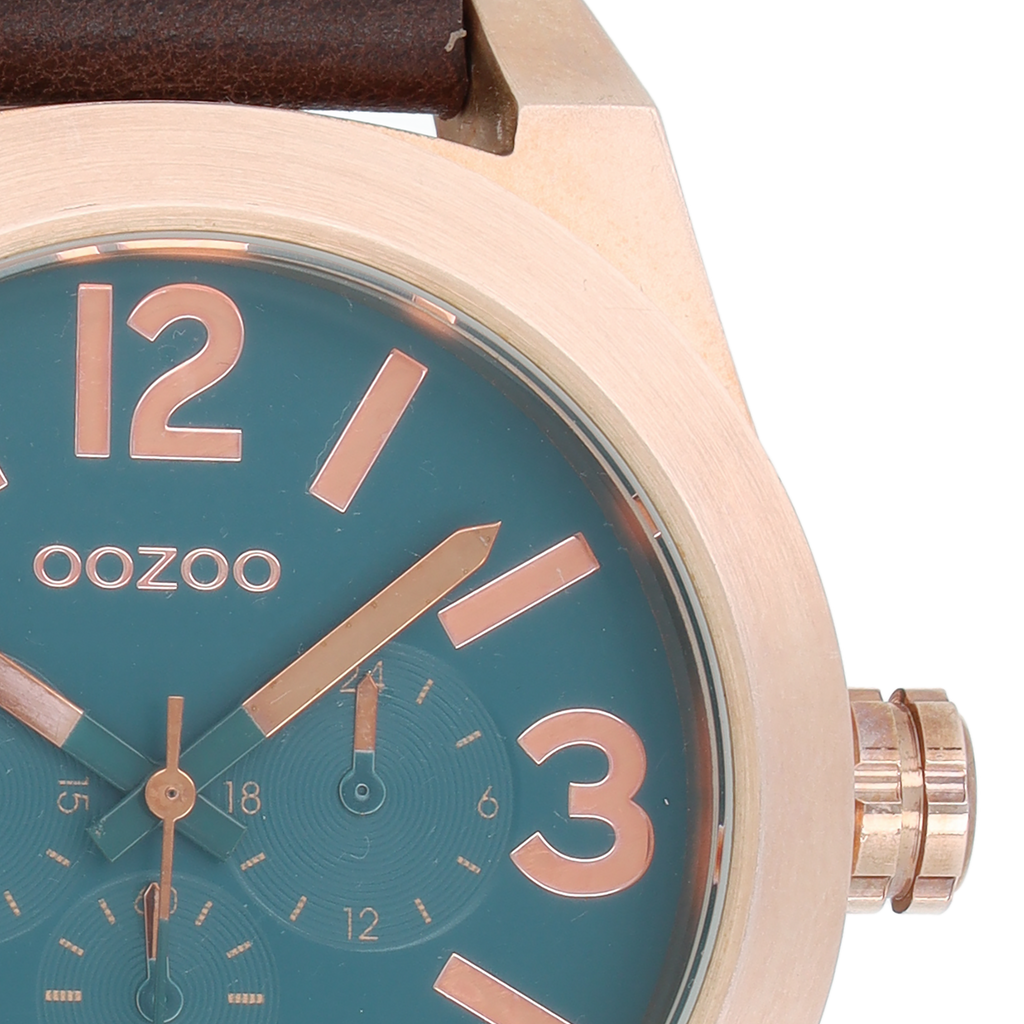 Rose gold coloured OOZOO watch with dark brown leather strap - C6733