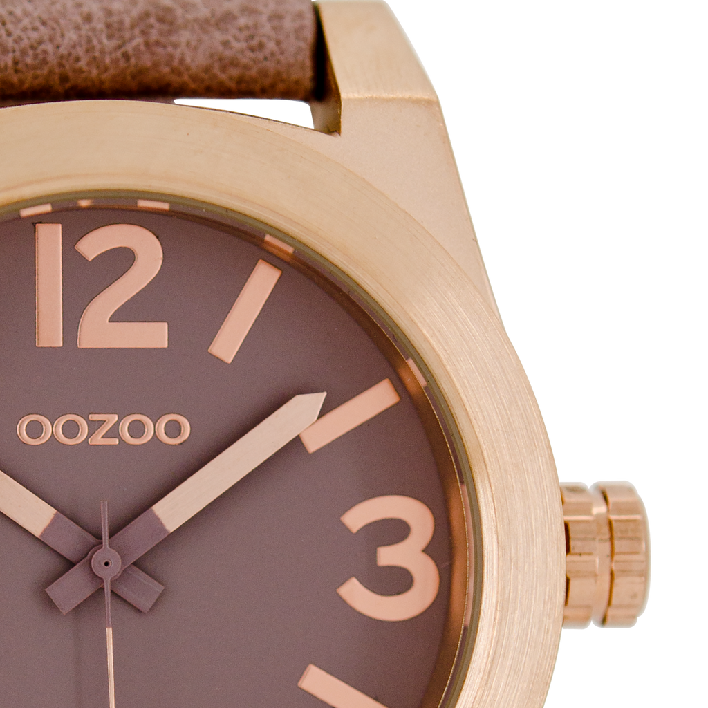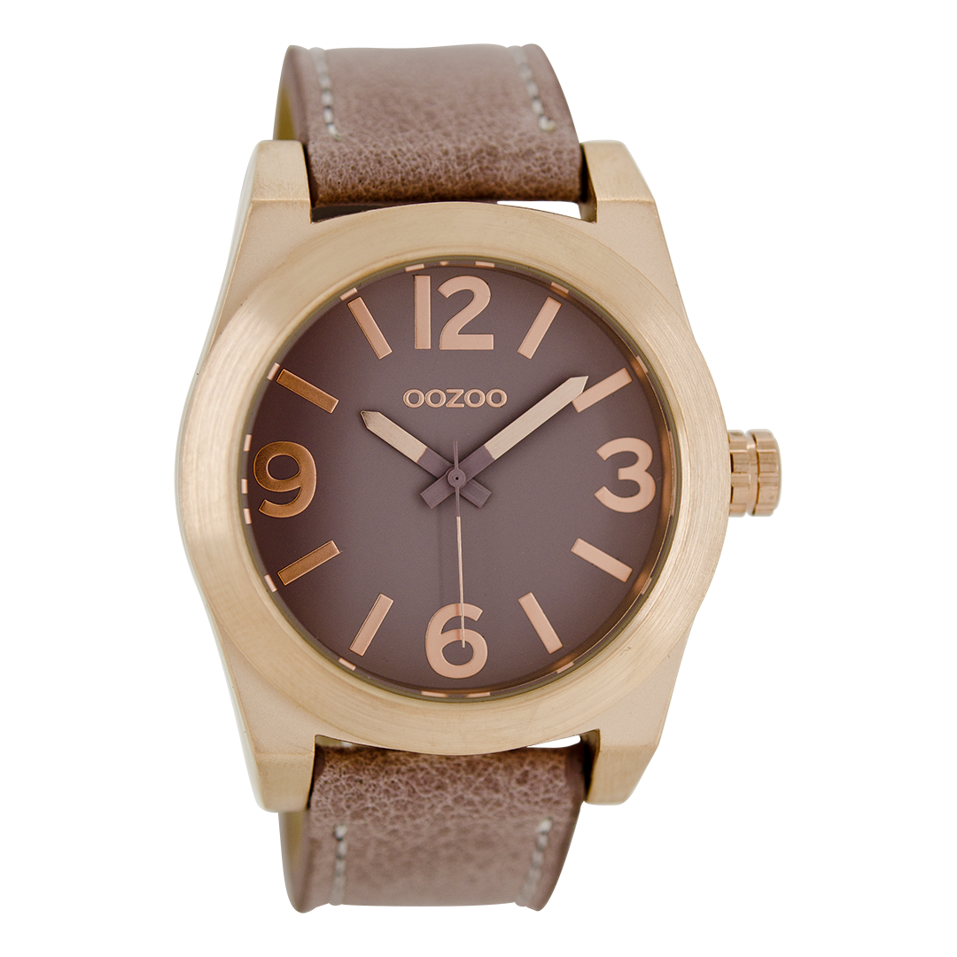Rose gold coloured OOZOO watch with pink grey leather strap - C6737