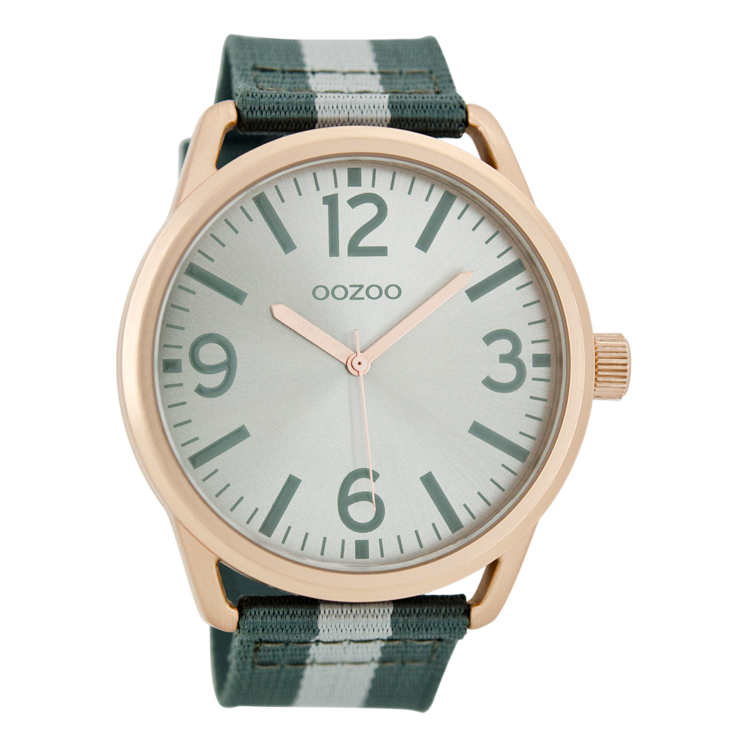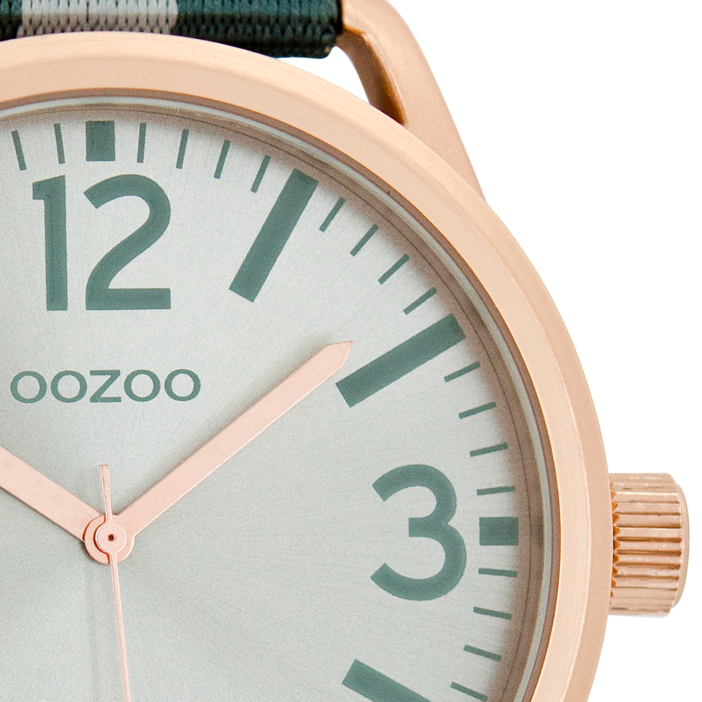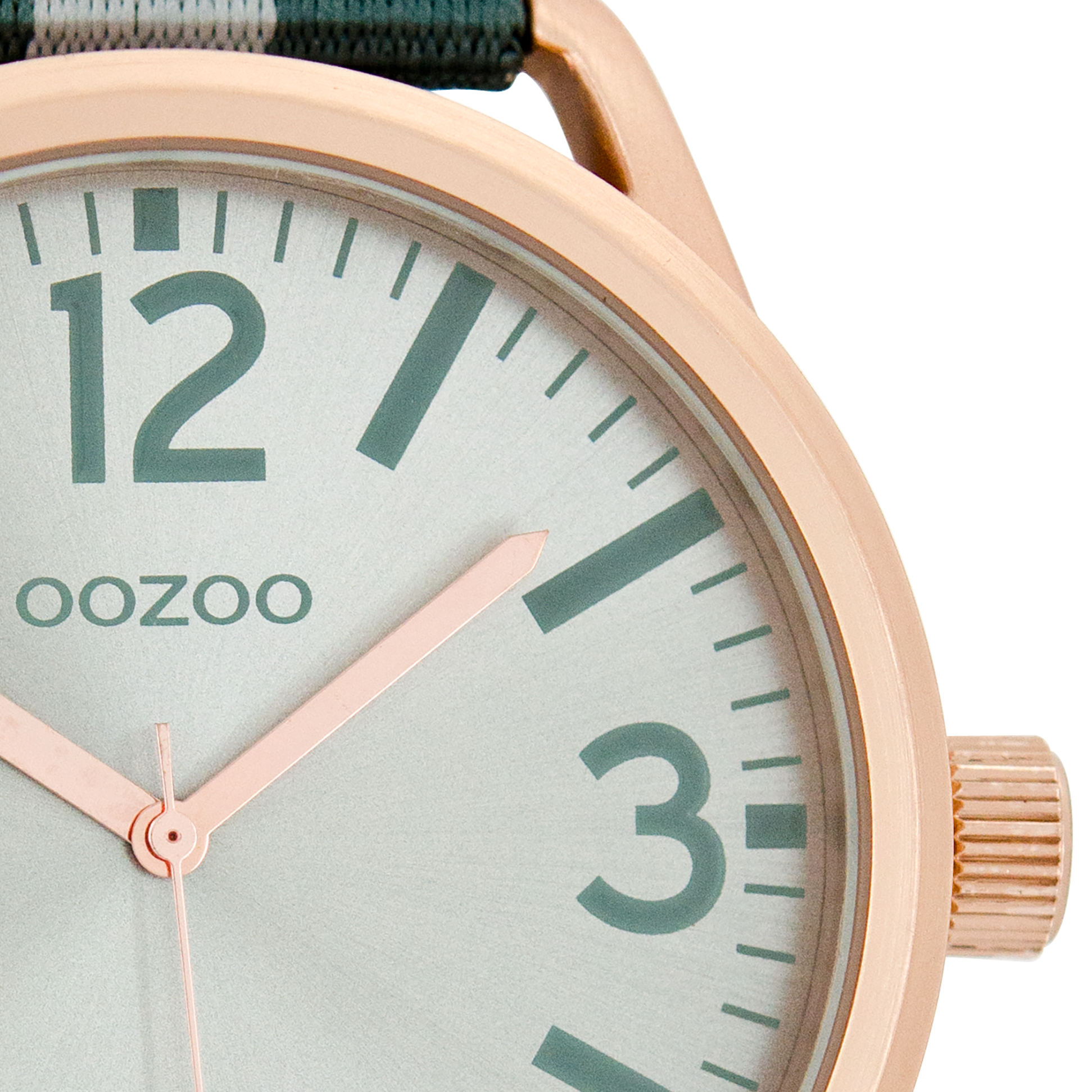 Rose gold coloured OOZOO watch with green/white leather strap - C7052