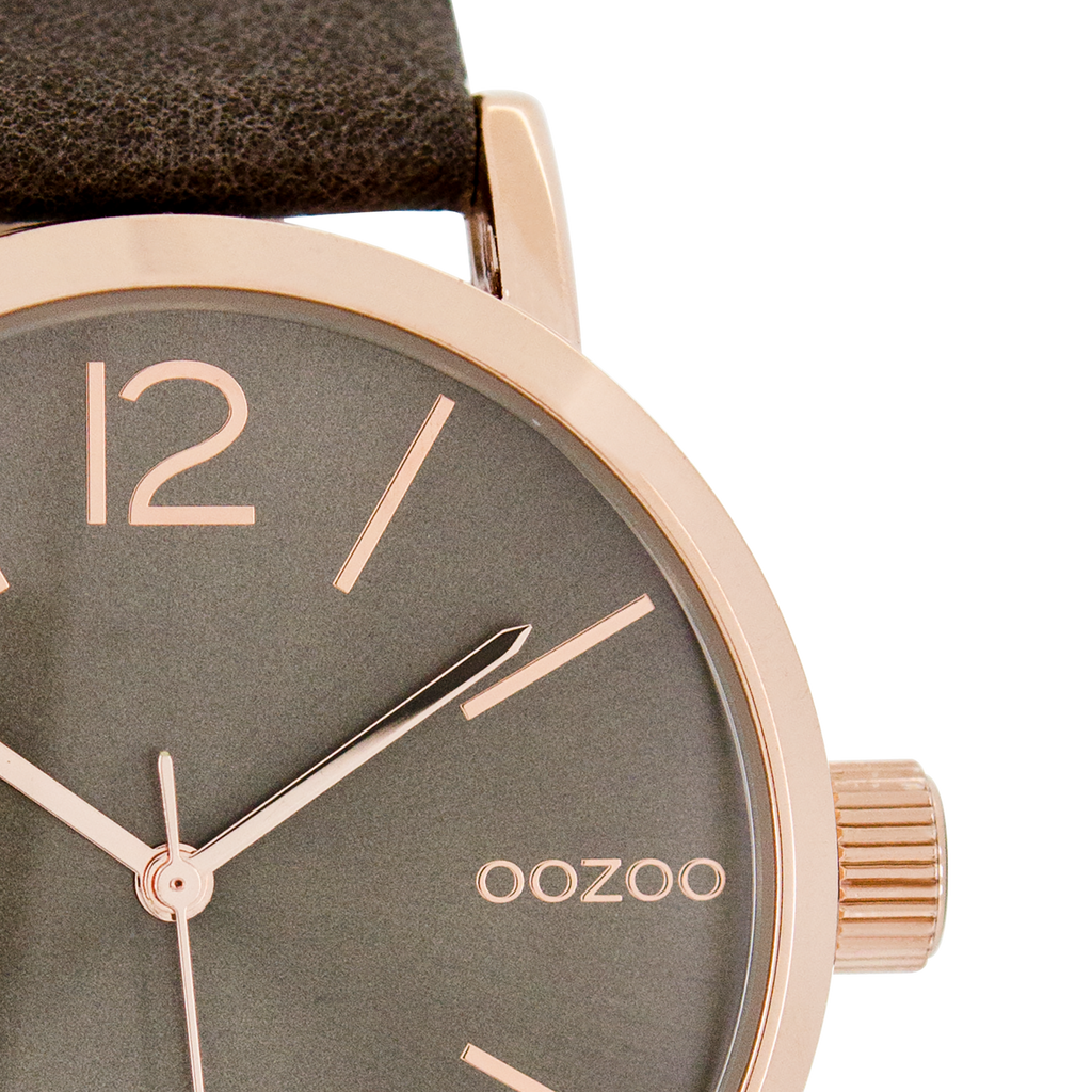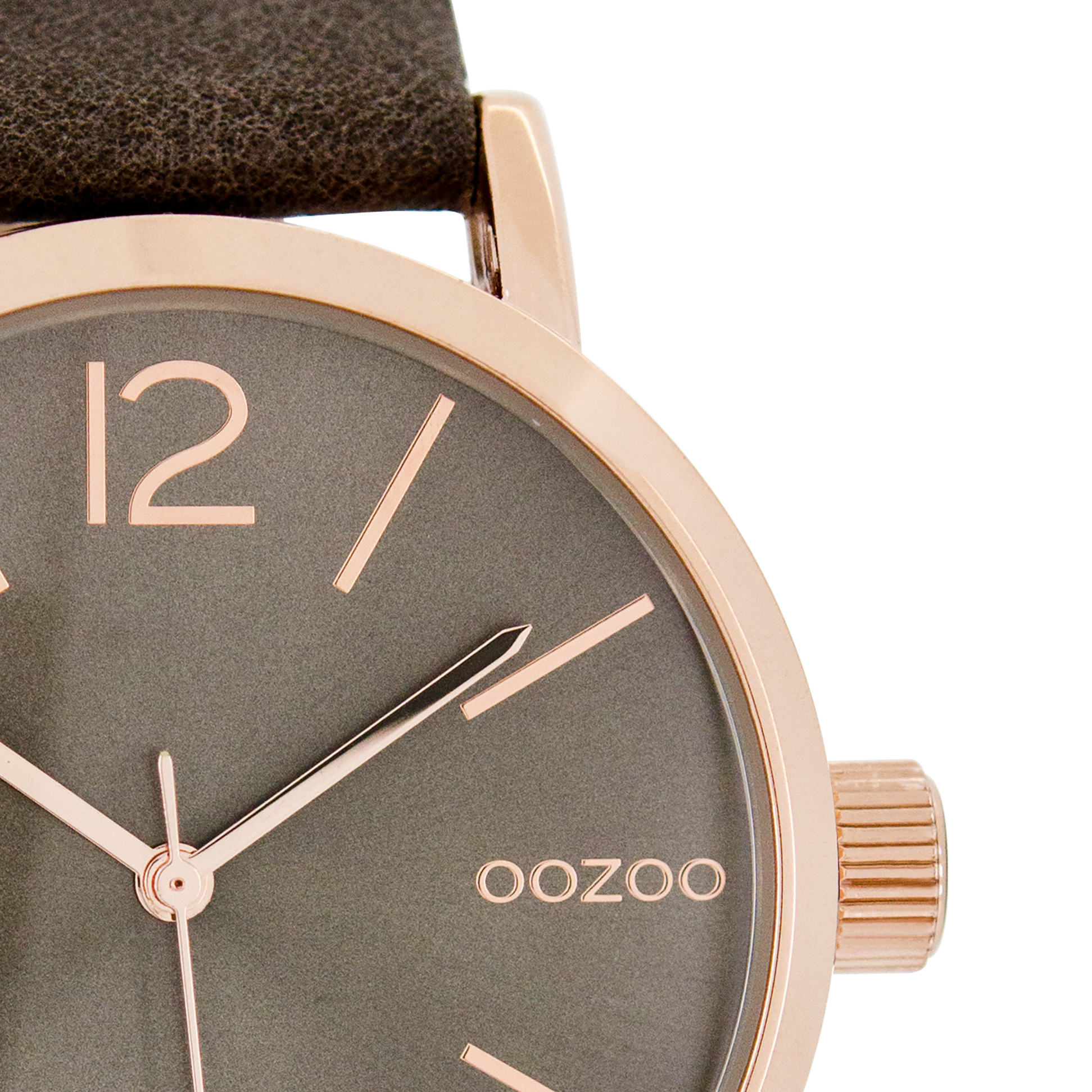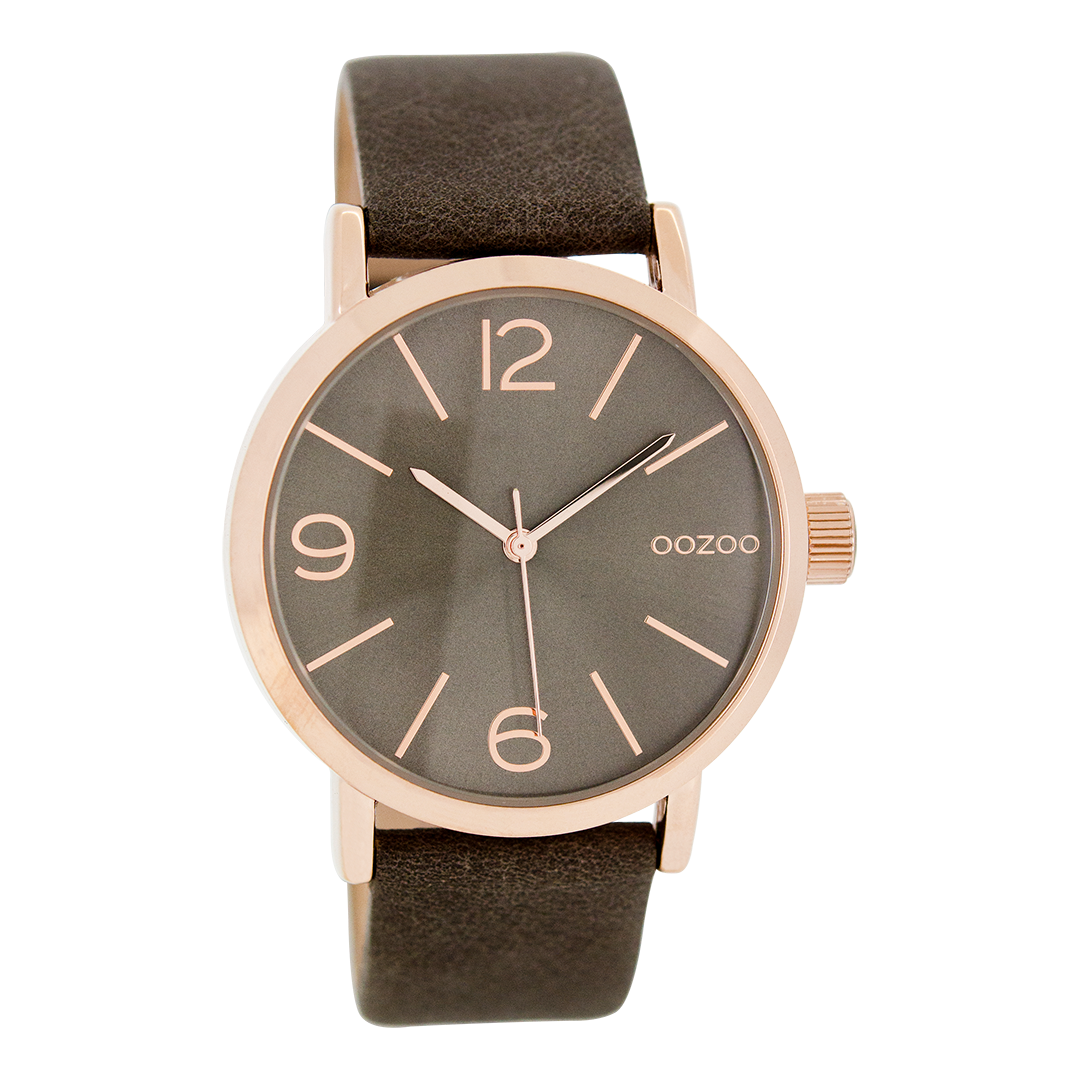Rose gold coloured OOZOO watch with taupe leather strap - C7578
