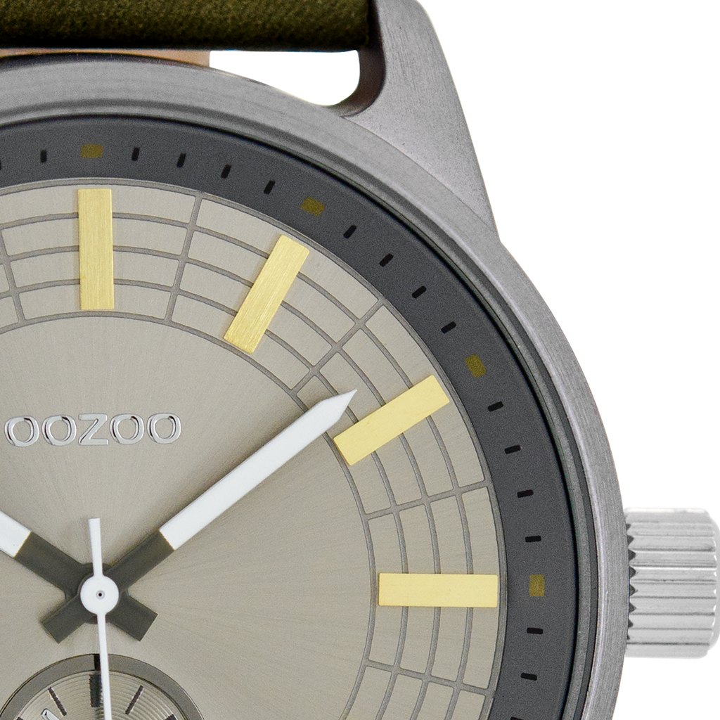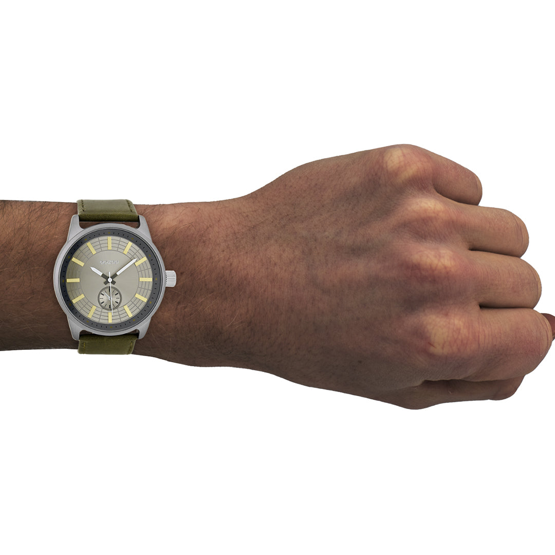 Stand out with this beautiful round gents design from the trendy OOZOO Timepieces collection. The C7821 has a stitched dark green leather strap and 48 mm titanium matte watch case. You are making quite the fashion statement with this grey sunray dial, gold coloured stripes digits and grey/white hands. This essential watch for your wardrobe has a mineral glass, stainless steel backplate and is nickel safe. This watch has a 2 Japanese movement and is covered by a 2 year warranty (see section 3 of our Refund, shipping & warranty policy).