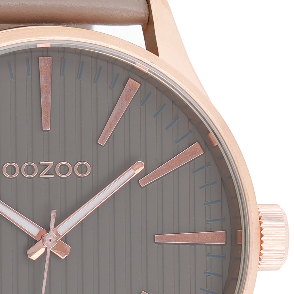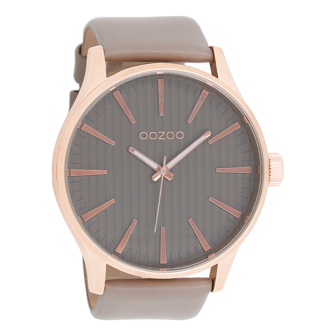 Rose gold coloured OOZOO watch with taupe leather strap - C8562