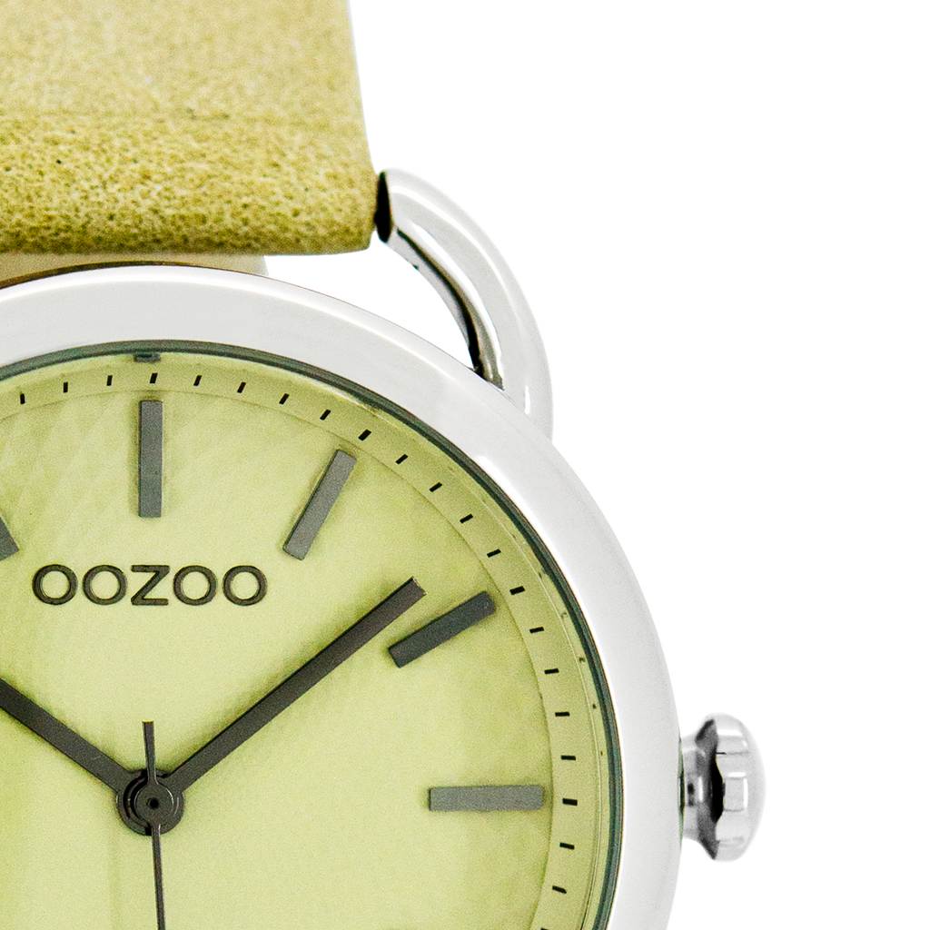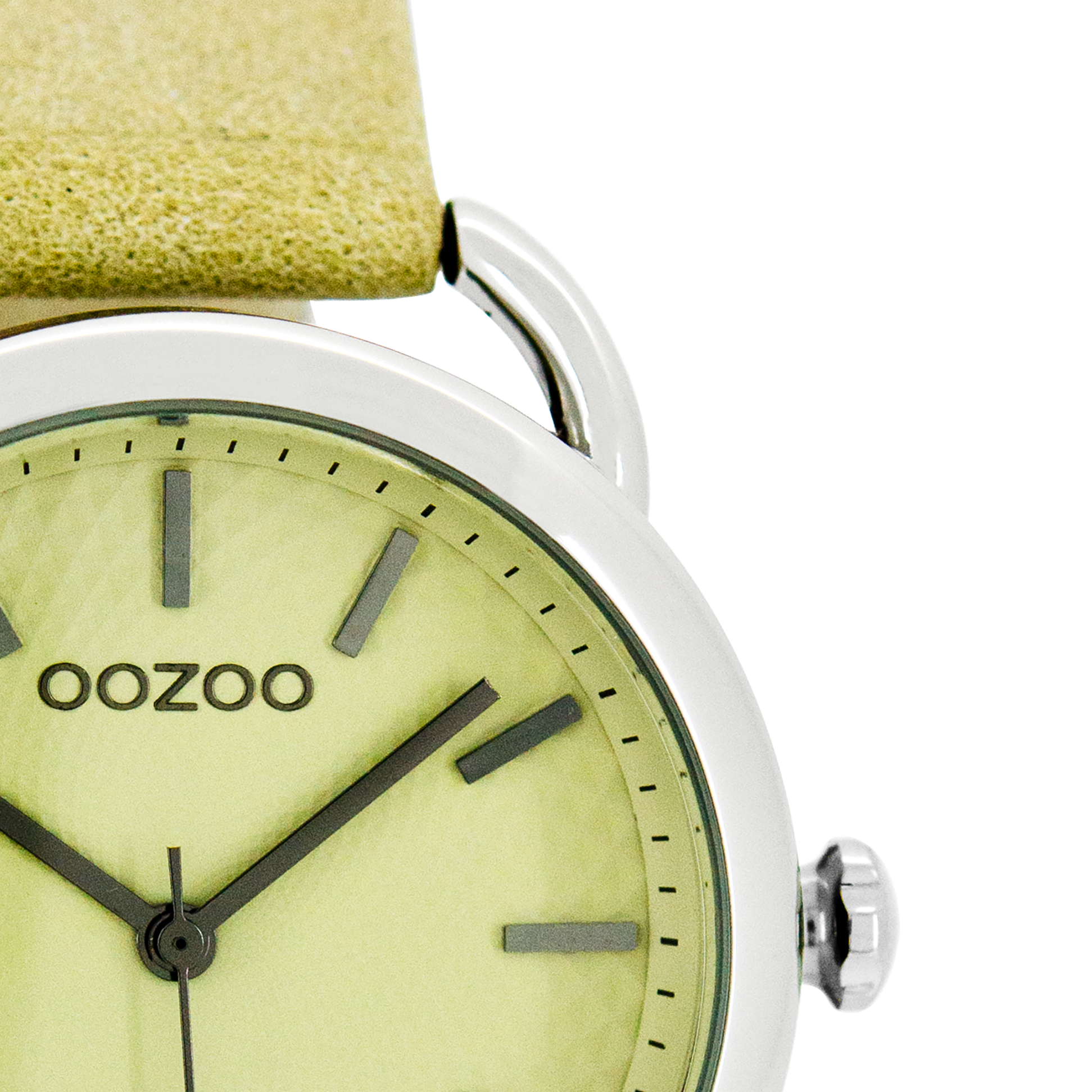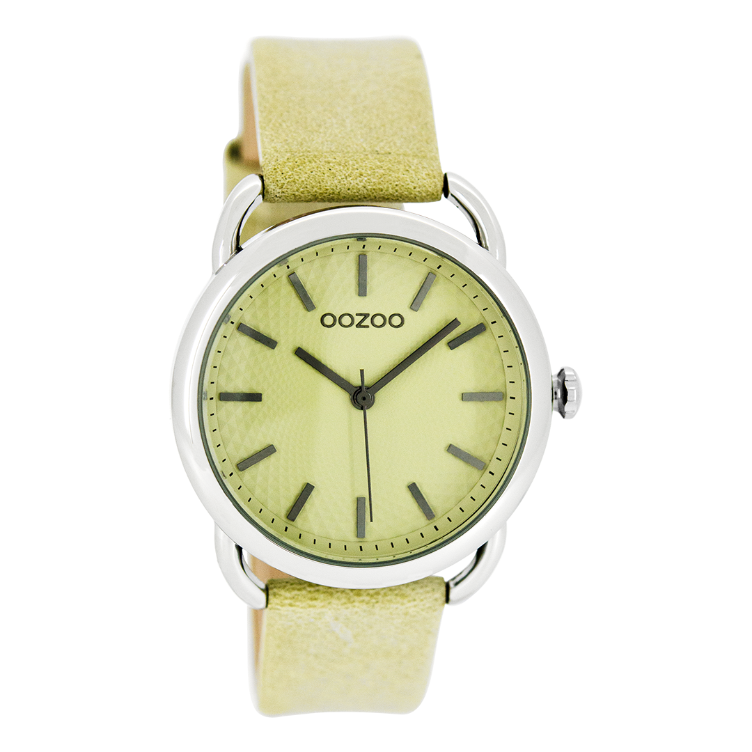 Silver coloured OOZOO watch with sand/light green leather strap - C8715